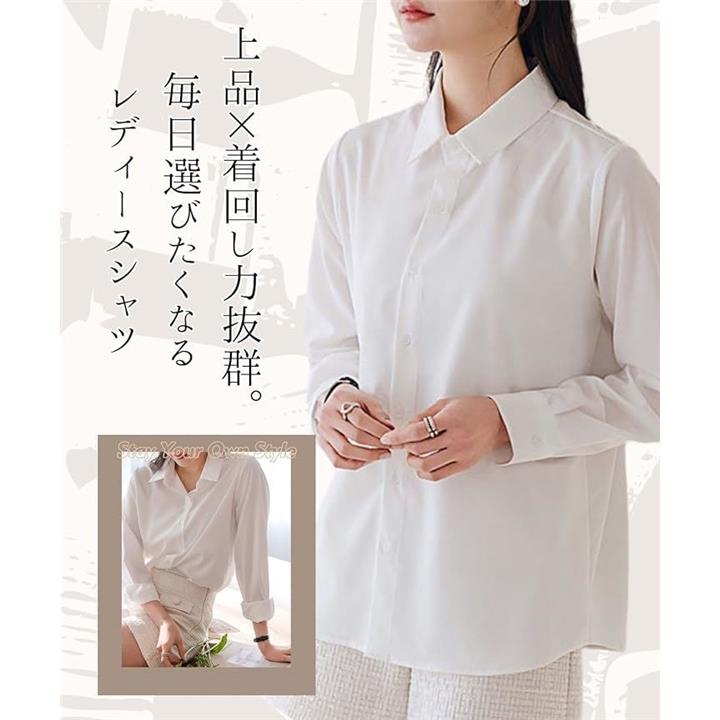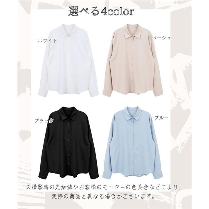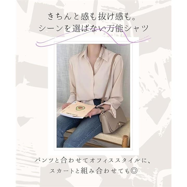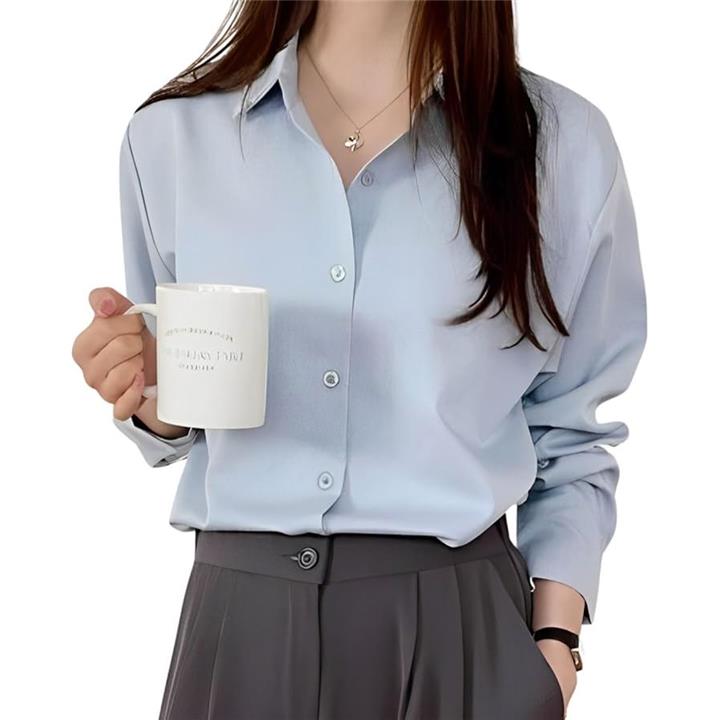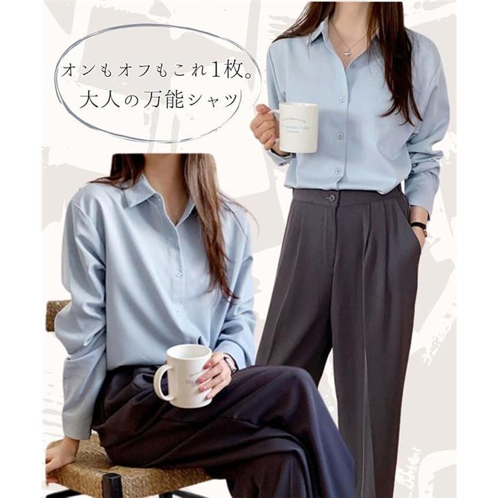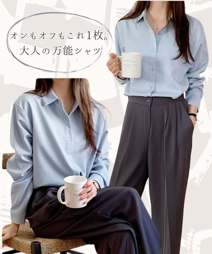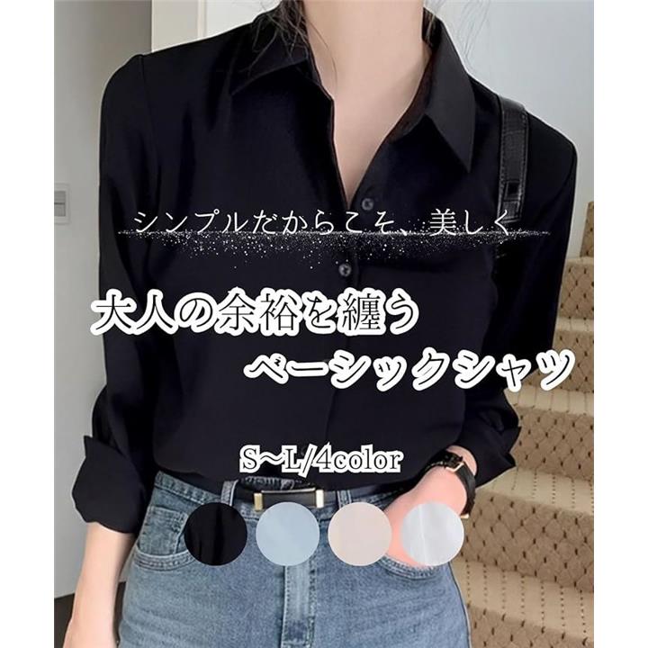[Four leaf] 長袖 シャツ レディース シフォン素材 ポロカラー 無地 通勤 オフィスカジュアル ゆったり 着痩せ 韓国風 体型カバー トップス きれいめ フォーマル |