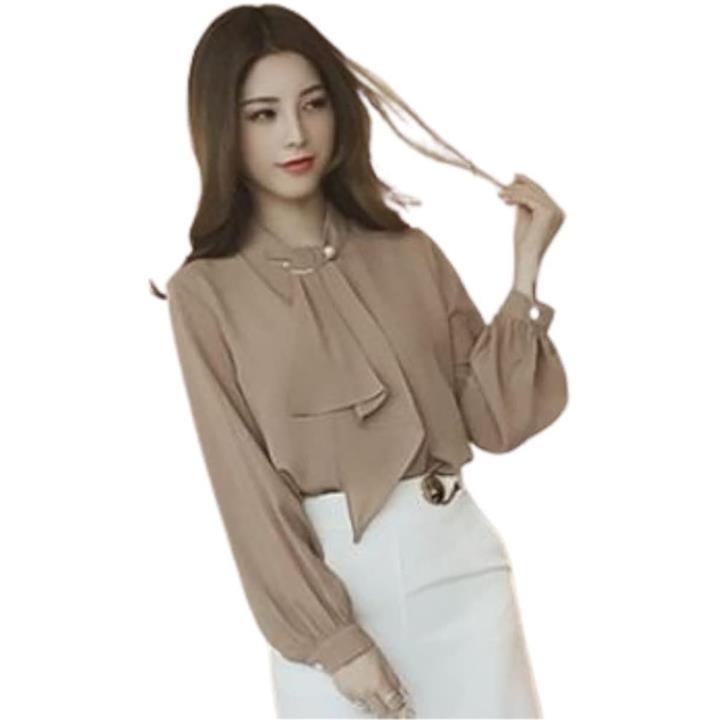 [RED RAY] [レッドレイ] カジュアル シフォン ボウタイ シャツ ブラウス 長袖 (XL, ブラウン) |