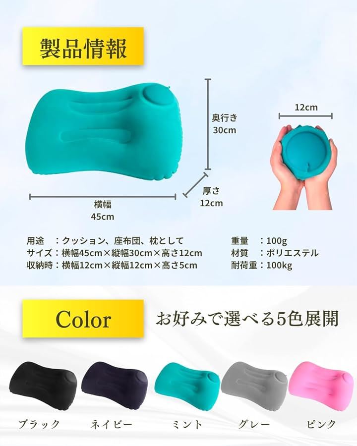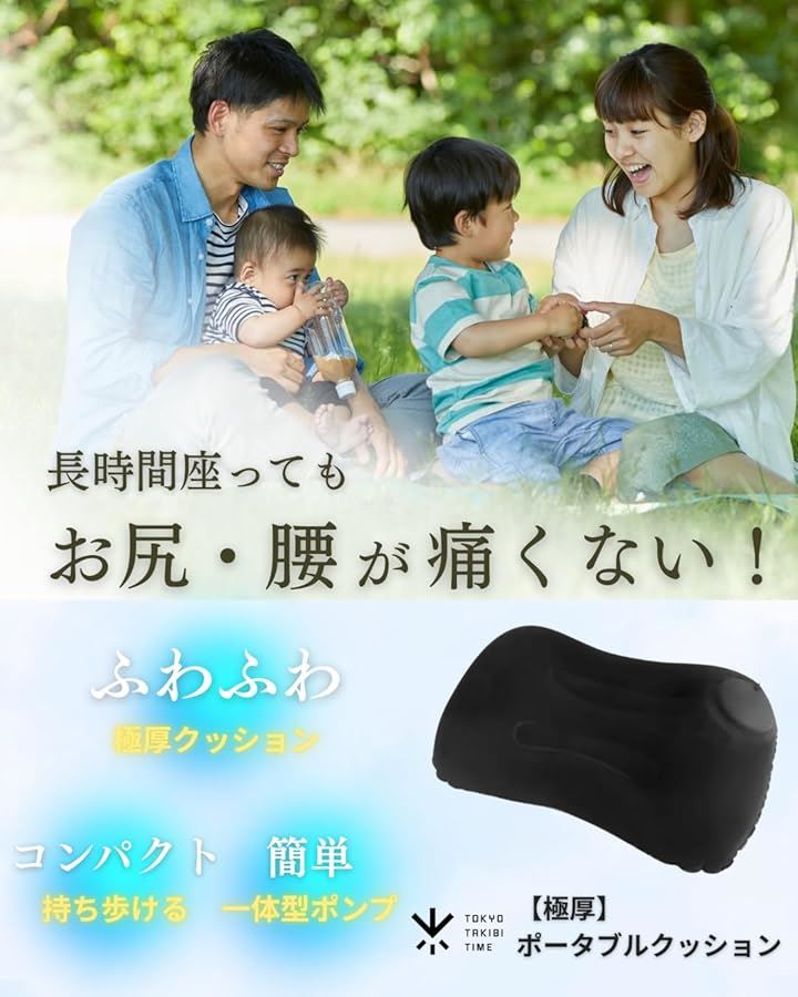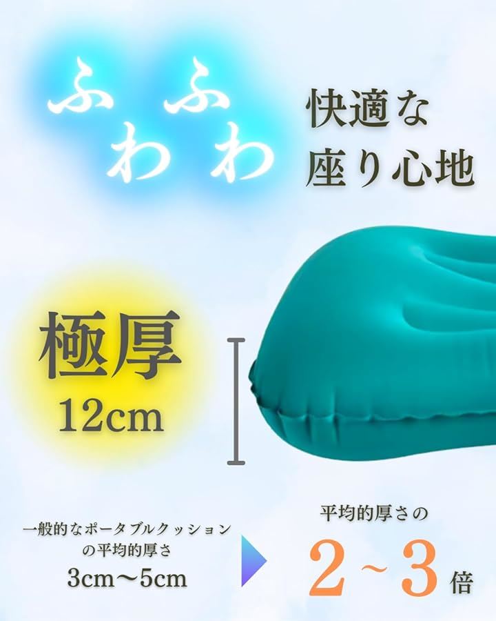 レジャーシート 一人用 厚手 極厚 x コンパクト エアー ポータブル クッション 座布団 腰 お尻が痛くならない キャンプ アウトドア ピクニック お出かけ スポーツ観戦 デスクワーク 飛行機 快適グッズ バス 旅行 軽量