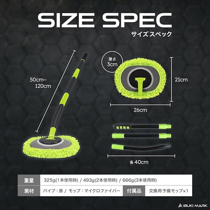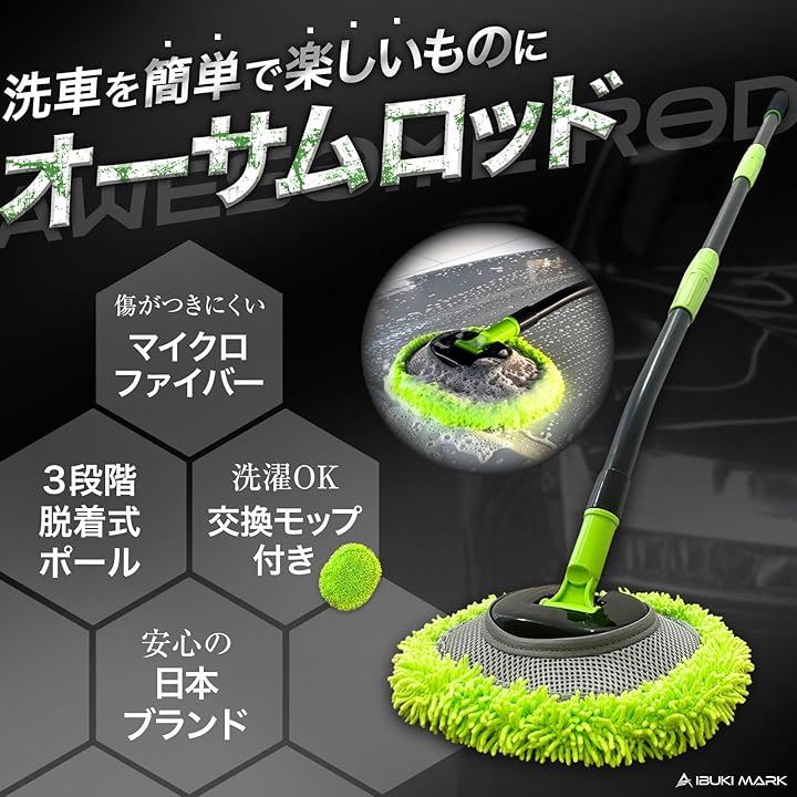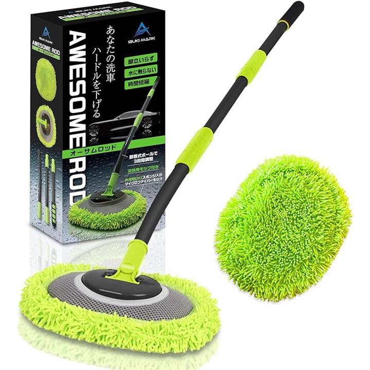 洗車モップ 洗車スポンジ 洗車ブラシ ボディ用 洗車用品 マイクロファイバー 湾曲 連結ポール 3段階調整 AWESOME ROD オーサムロッド