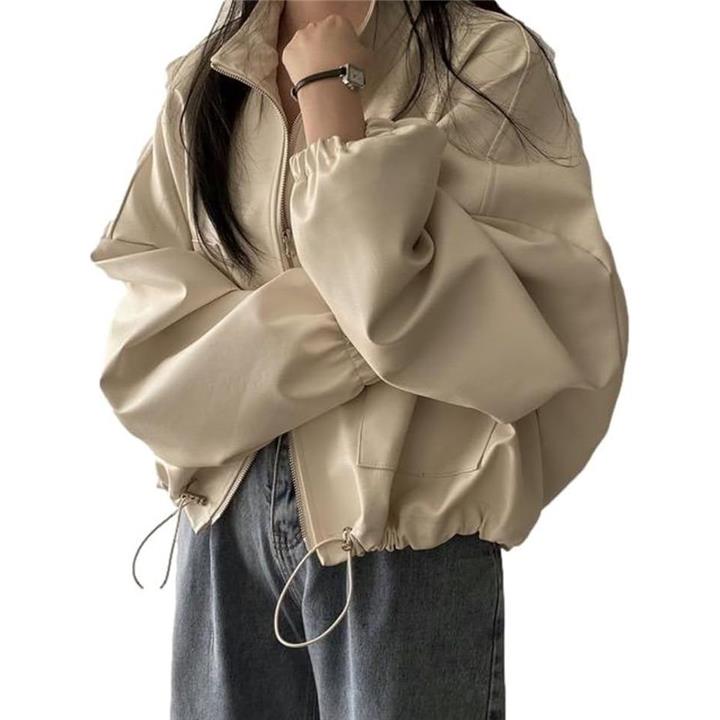 ジェイスコット ルーズフィットブルゾン フェイクレザージャケット ボリューム袖 ジップアップ 裏地有