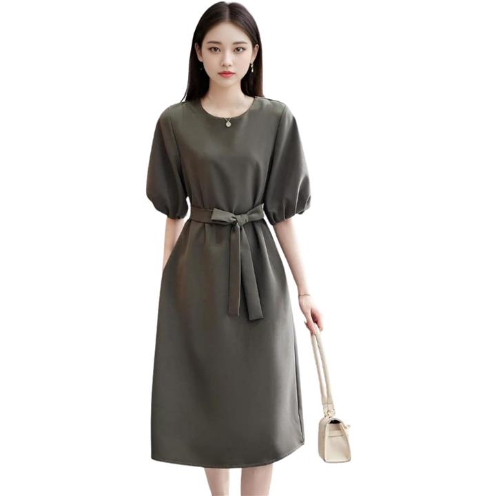 [J-Scott] パフスリーブワンピース サッシュベルト付き ミディ丈 五分袖 ラウンドネック 無地 Iライン きれいめ 卒園 エレカジ 引き締め お受験 ワークウェア クール JS82 |