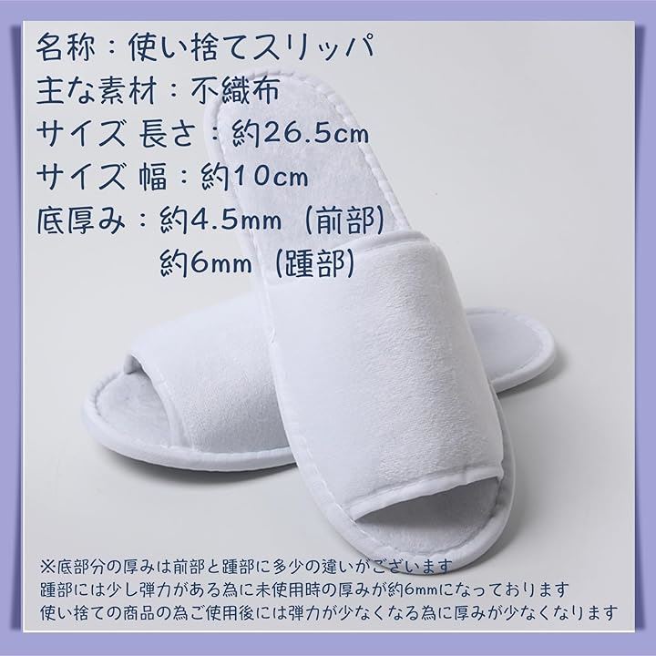 使い捨てスリッパ 個包装 業務用 ホテル仕様 エステ 美容サロン アメニティ 持ち帰りスリッパ 衛生的 底面 厚め