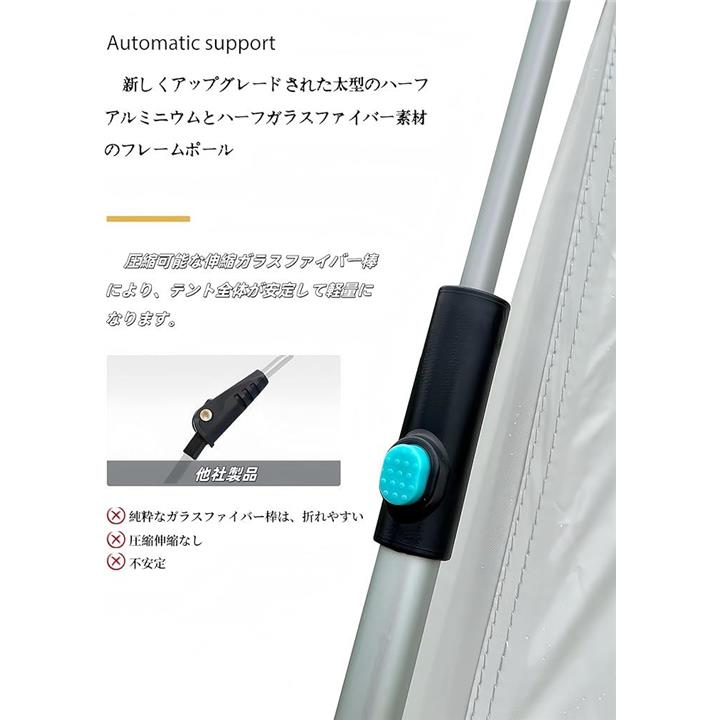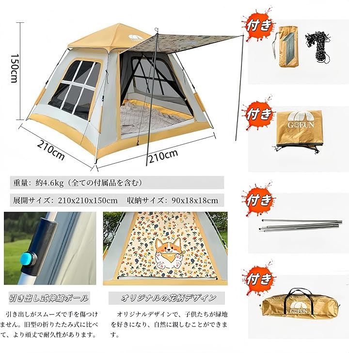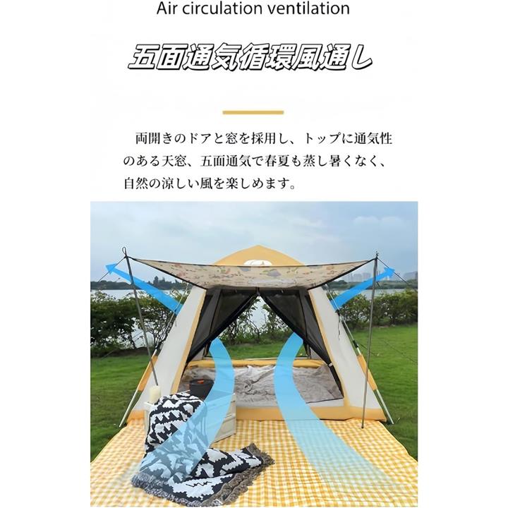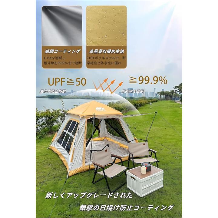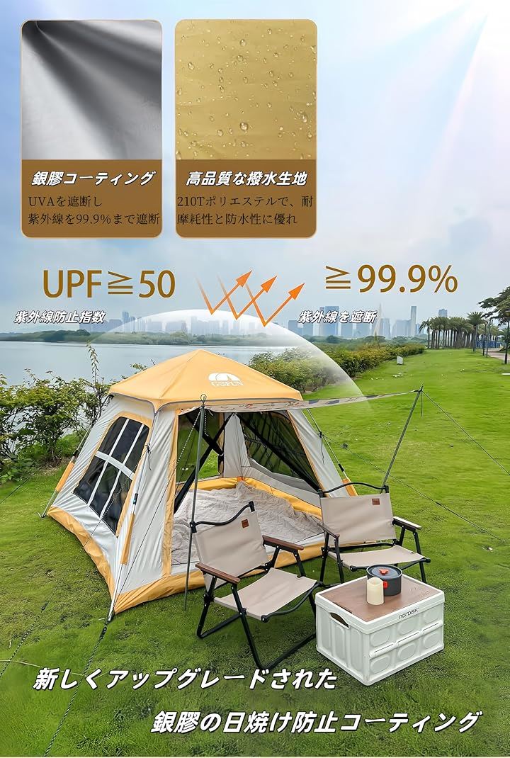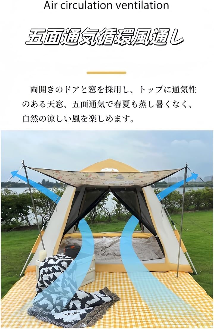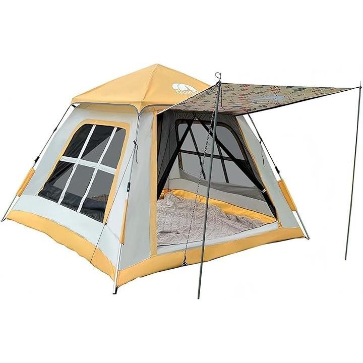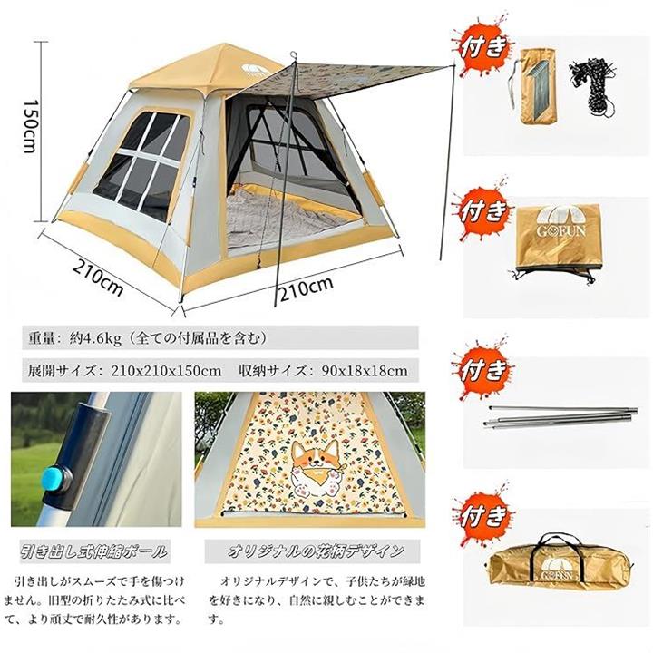 テント ワンタッチテント 2~4人用 2WAY キャンプテント 耐水圧2000mm 二重層 設営簡単 uvカット加工 アウトドア 前室付き 紫外線防止 防風防水 撥水加工 通気 折りたたみ 前後ダブルドア 防虫対策 メッシュ窓付き 収納袋付