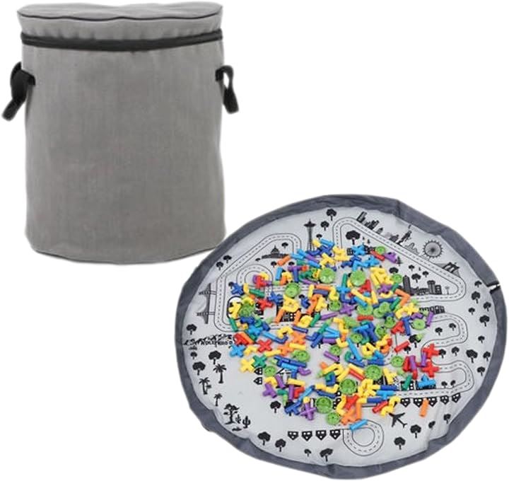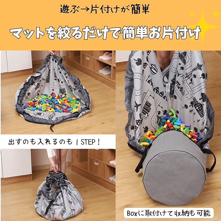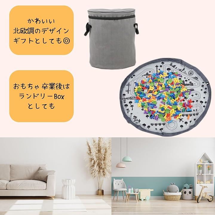 おもちゃ収納 & プレイマット 2WAYセット直径150cm お片付けマット 一体型 収納ボックス 収納バケツ おもちゃ箱 簡単お片付け 巾着式 ブロック ぬいぐるみ おままごとに最適 北欧風デザイン