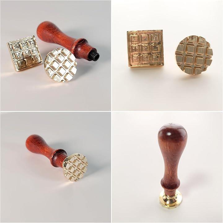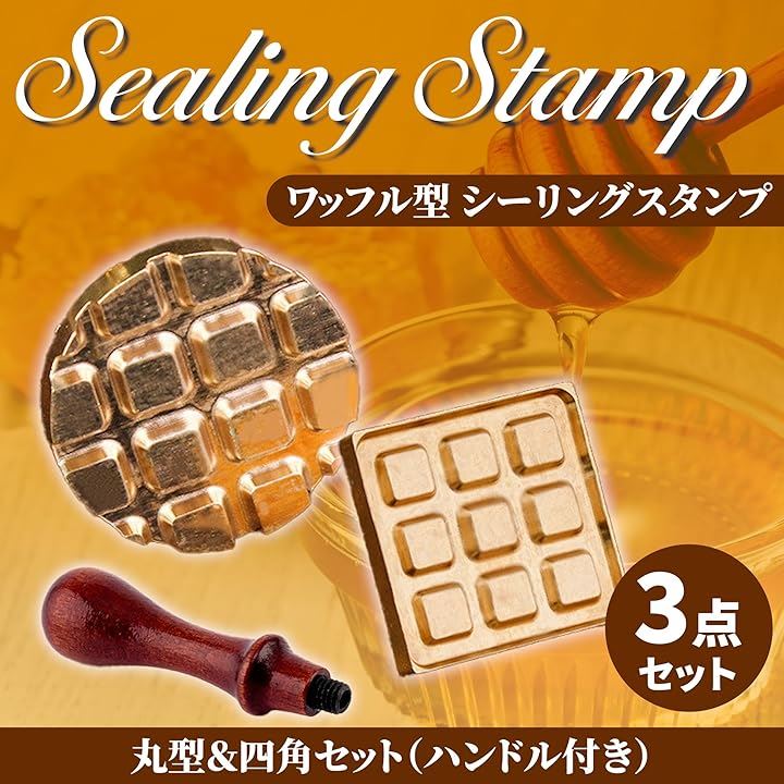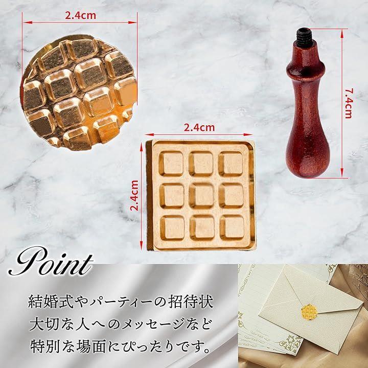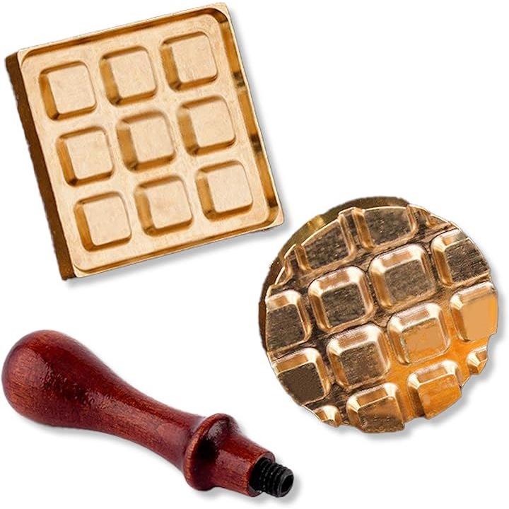 シーリングスタンプ ワッフル 2個セット 木製ハンドル付き シーリングワックス 封蝋 焼き菓子 プレゼント ギフト 手紙 封筒