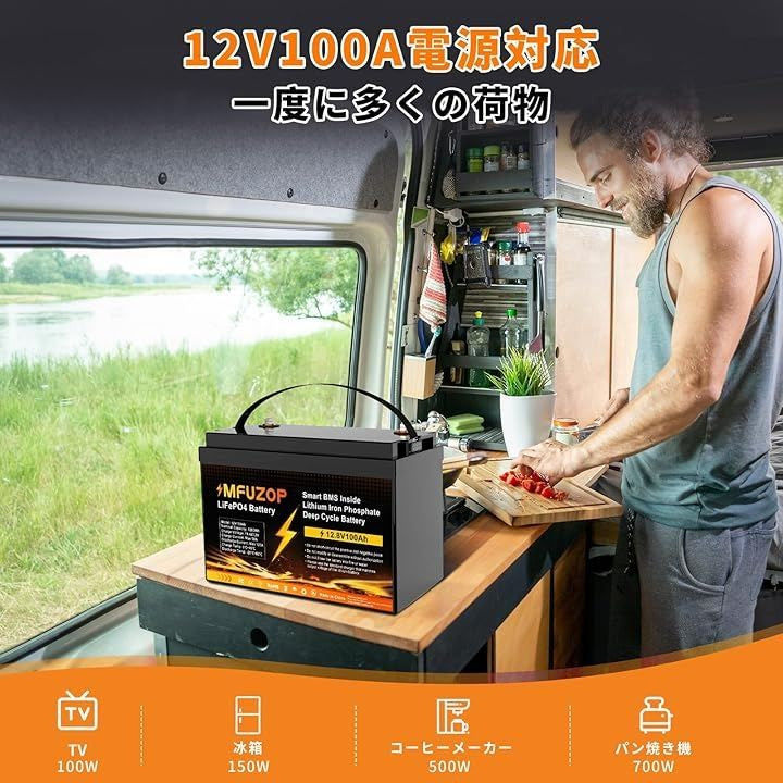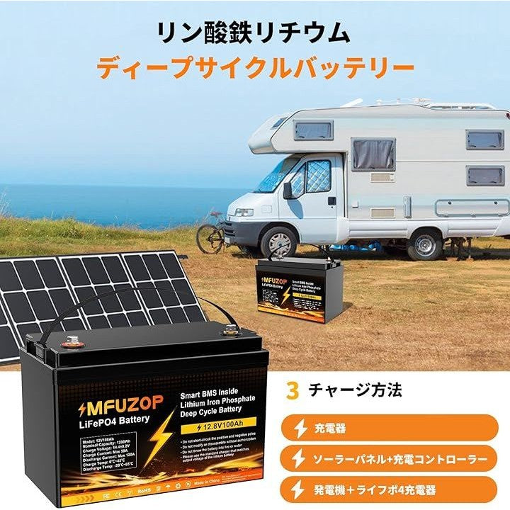 MFUZOP 12V 100Ah LiFePO4リン酸鉄リチウムイオンバッテリー 1280Wh内蔵 直列 並列接続 RV ソーラー発電 セキュリティデバイス 車中泊 オフグリッド 防災対策 |