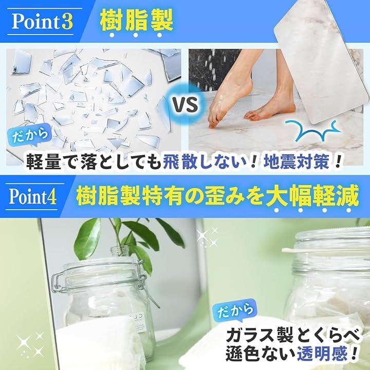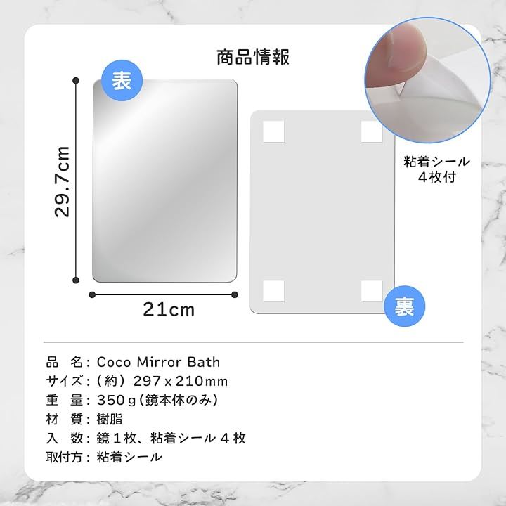 専門家監修/クリアな映像 浴室鏡 お風呂鏡 粘着シール式 くもりにくい ミラー