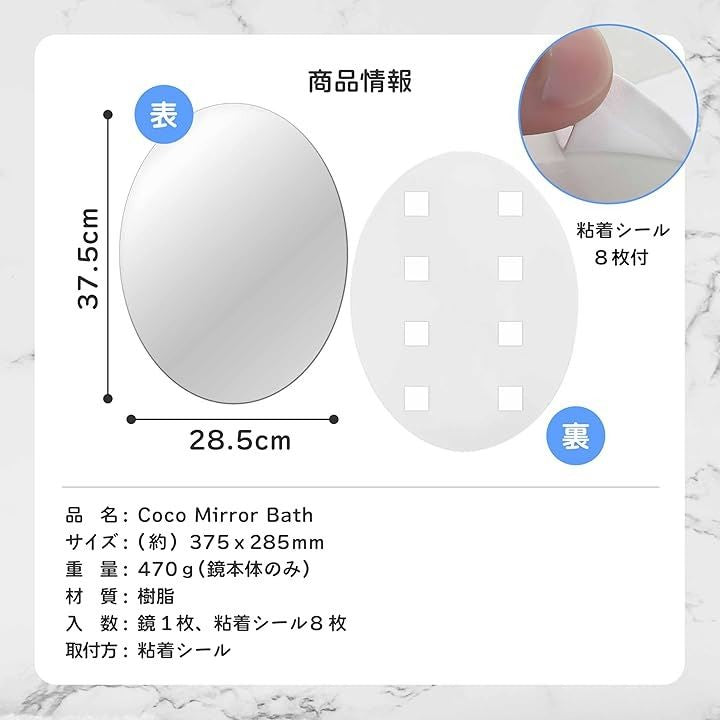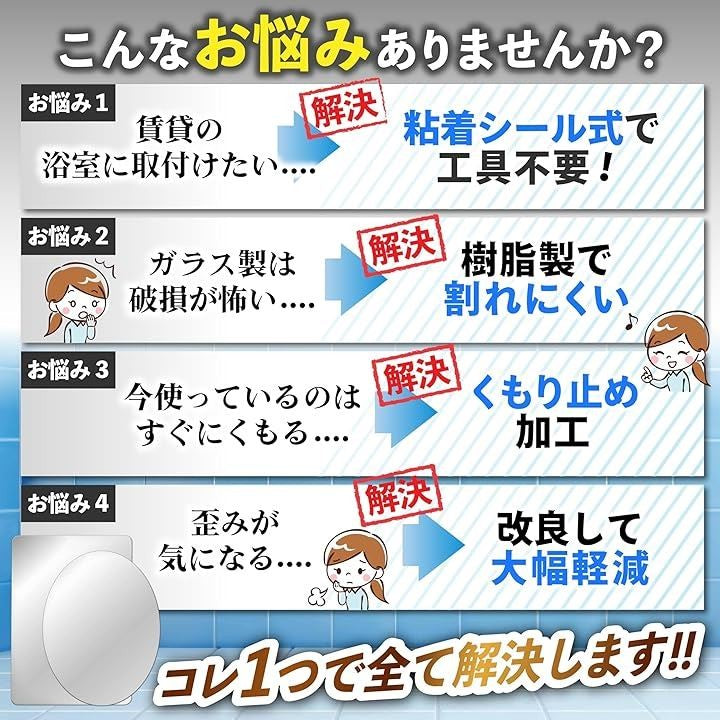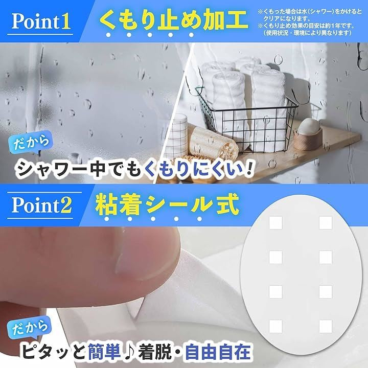 専門家監修/クリアな映像 浴室鏡 お風呂鏡 粘着シール式 くもりにくい