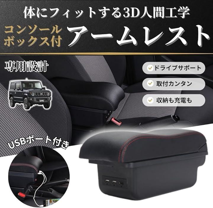 ジムニー アームレスト USB 充電 コンソールボックス 大容量収納 JB23 JB33 JB43 JB64 JB74 肘掛け 車内 アクセサリー カーパーツ