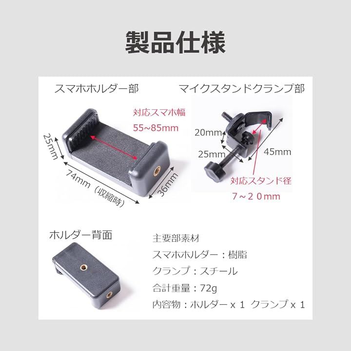 マイクスタンド スマホ 固定 ホルダー 配信用 楽譜スタンド スピーチ カンペ セットリスト