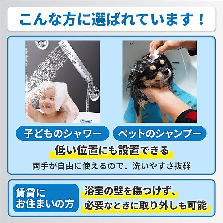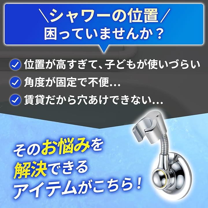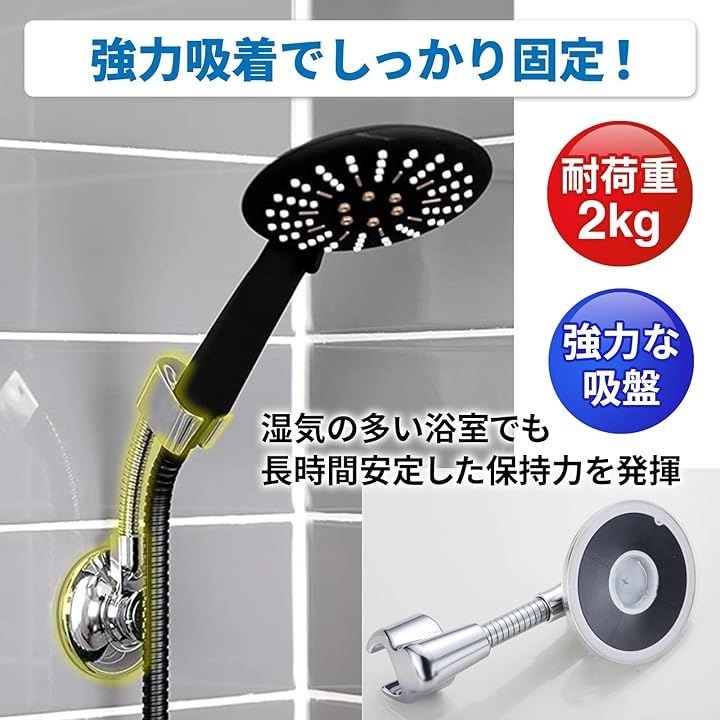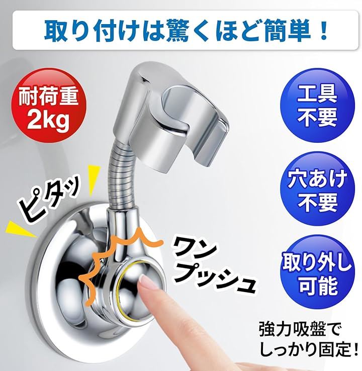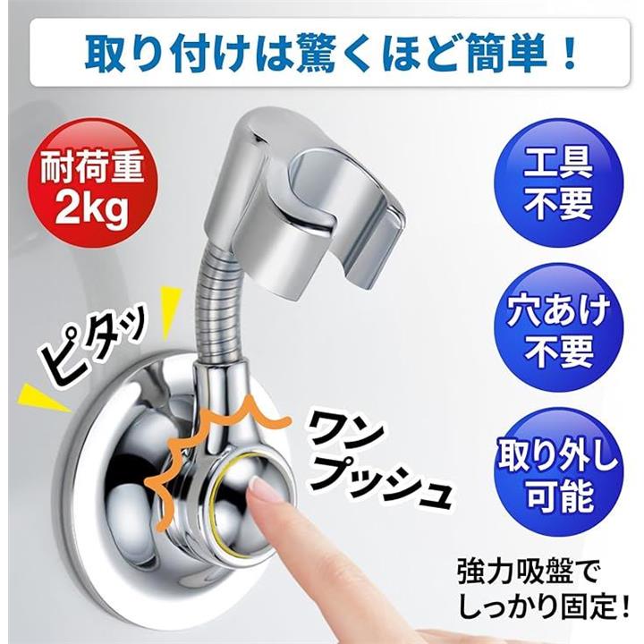 シャワーフック 強力吸着 360度回転 ワンプッシュ取付 シャワーホルダー 吸盤式 耐荷重2kg ABSクロム