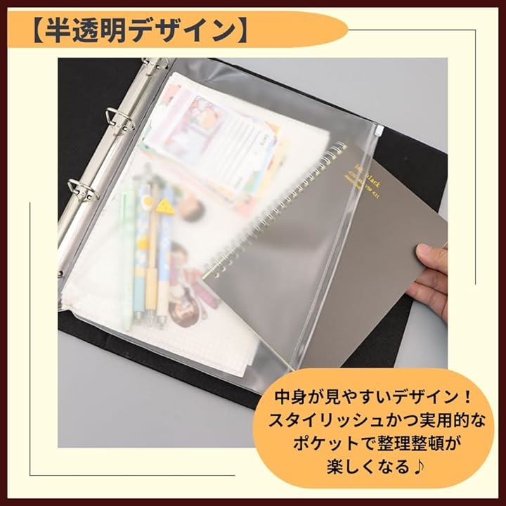 ポケットファイル ルーズリーフ クリアポケット 領収証ファイル ファスナー付き 10枚セット