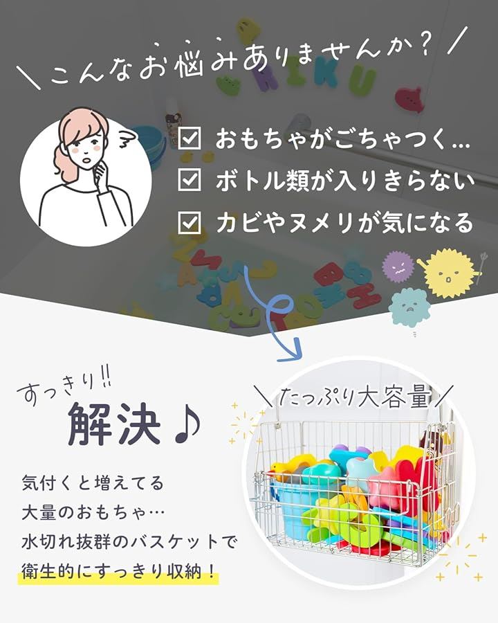 小さなお子さまがいるご家庭の浴室収納にぴったりのアイテムです。