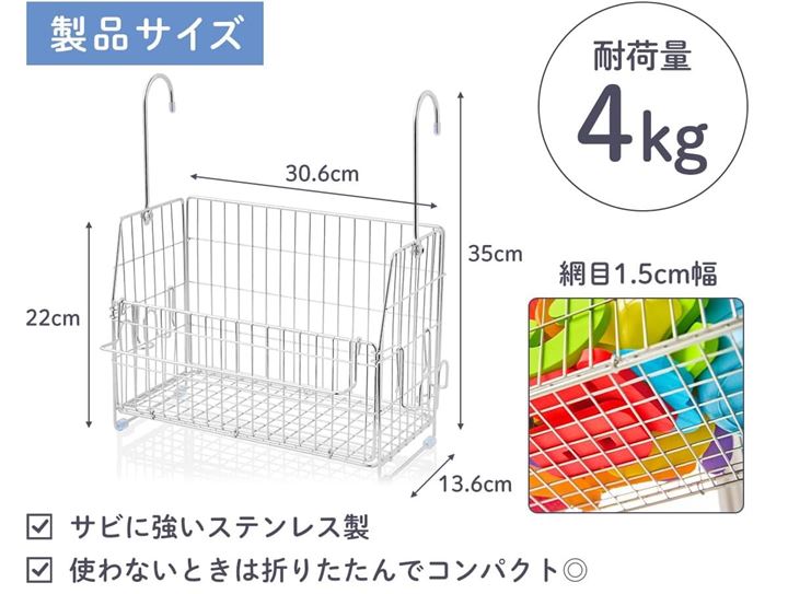 子供のお風呂おもちゃ収納にも最適で、使用後の水切れが良く、カビやヌメリの発生を抑えるため衛生的。