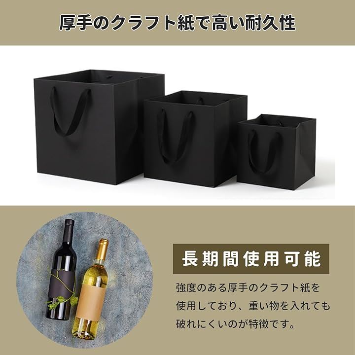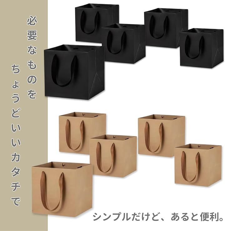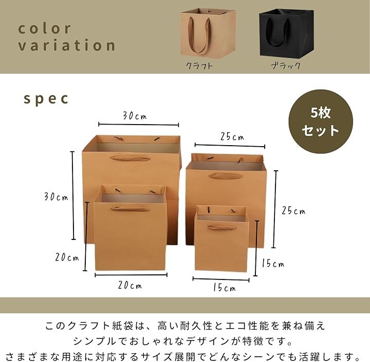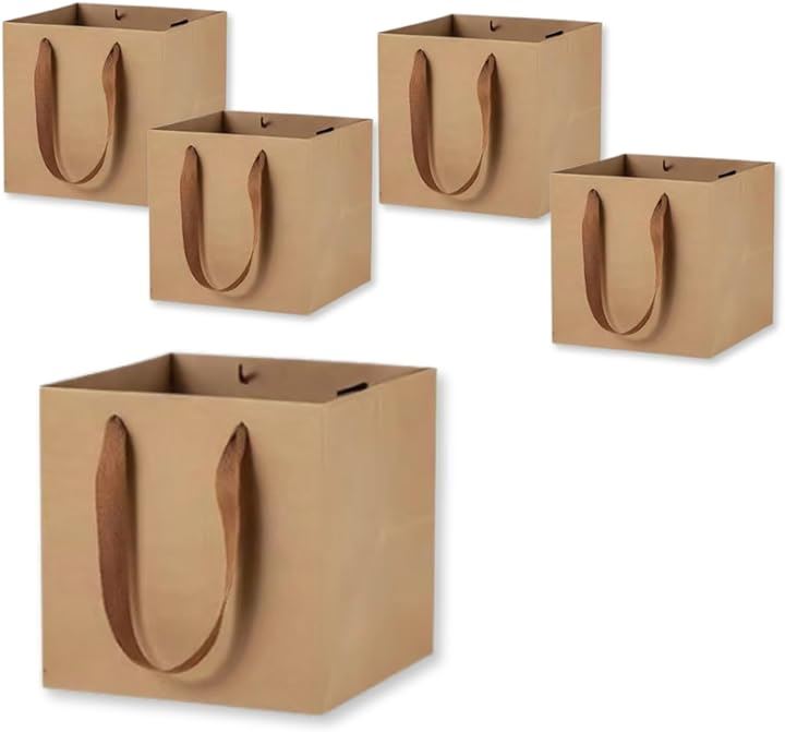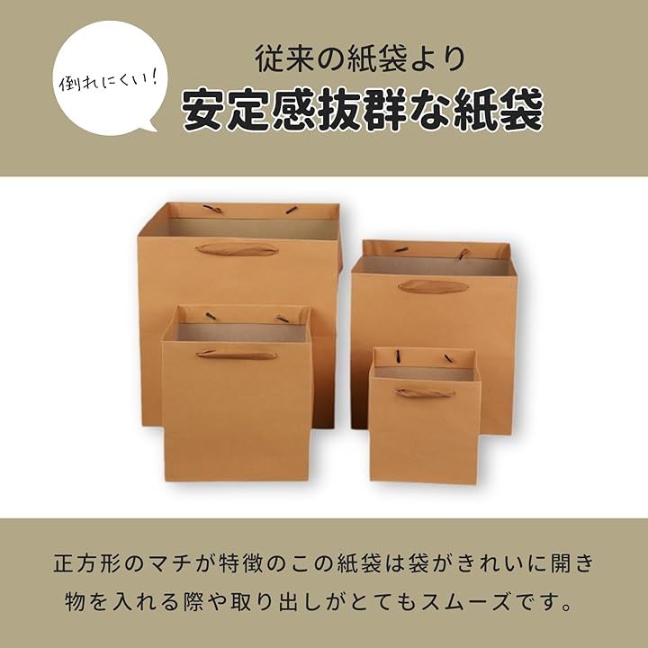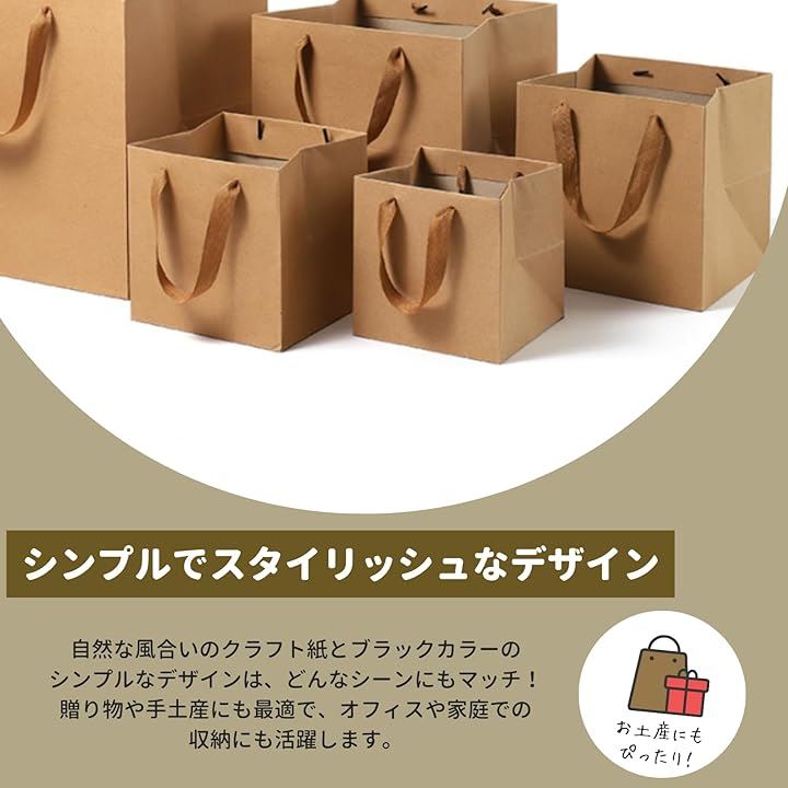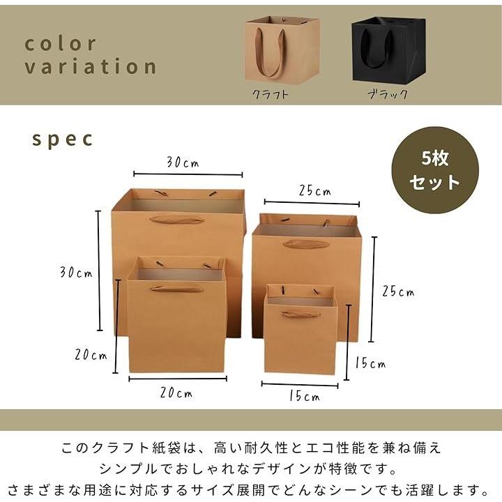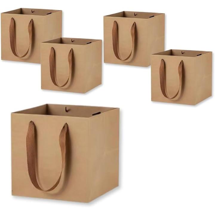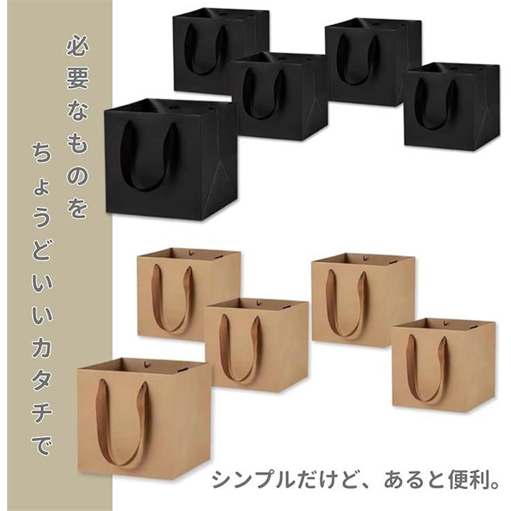 厚手クラフト紙袋 正方形 マチ広 ギフト用 5枚セット 贈り物 包装バッグ