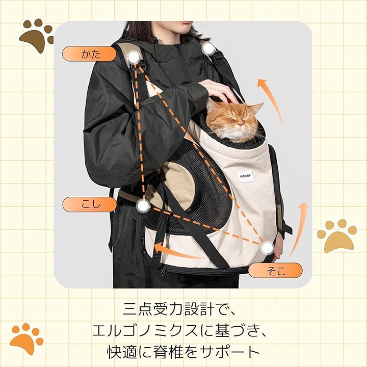 猫 キャリーバッグ 前抱き 犬 リュック 小型犬 軽量 通気 サポートマット付き 飛び出し防止 ポケット付き 抱っこ紐 ペット用