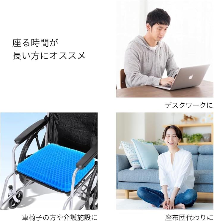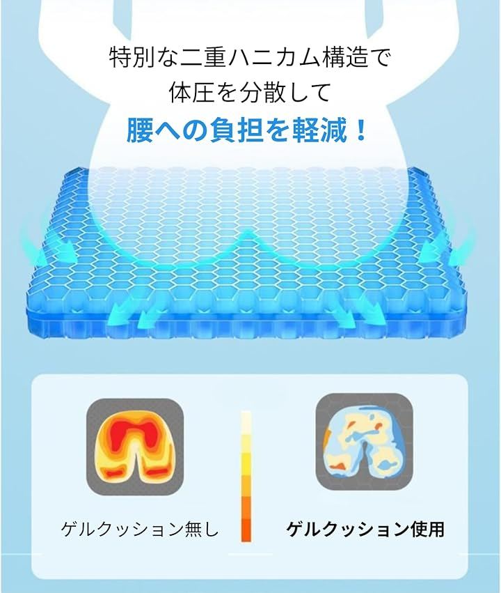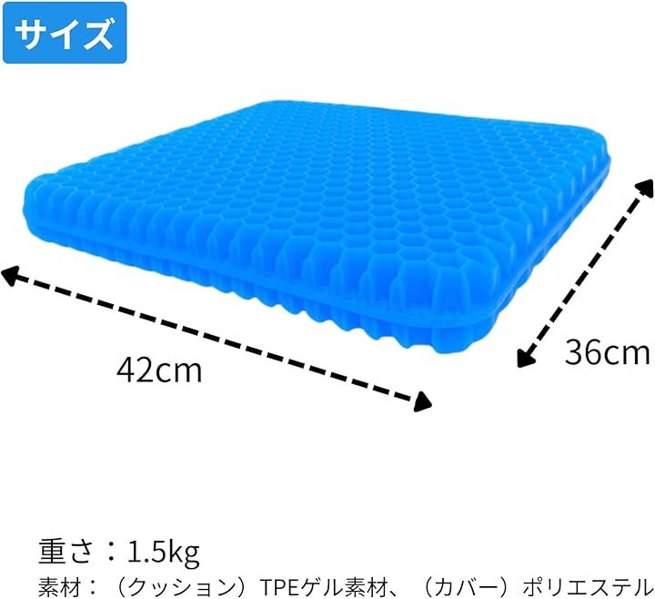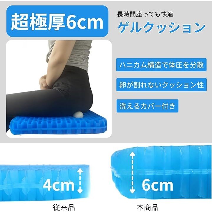 ゲルクッション 極厚6cm 椅子 車椅子 ゲーミングチェア 座布団 ハニカム構造 洗えるカバー 42x36x6cm