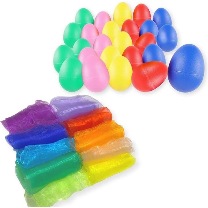 エッグシェイカー 20個 スカーフ 10色 楽器 マラカス リトミック ダンス