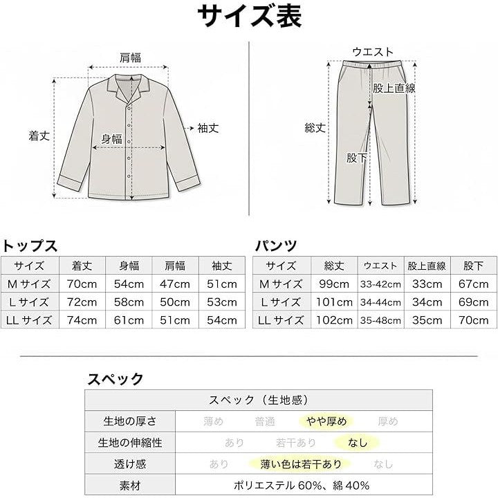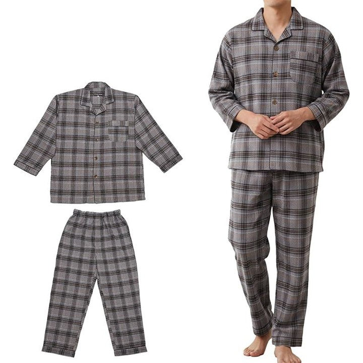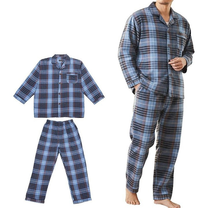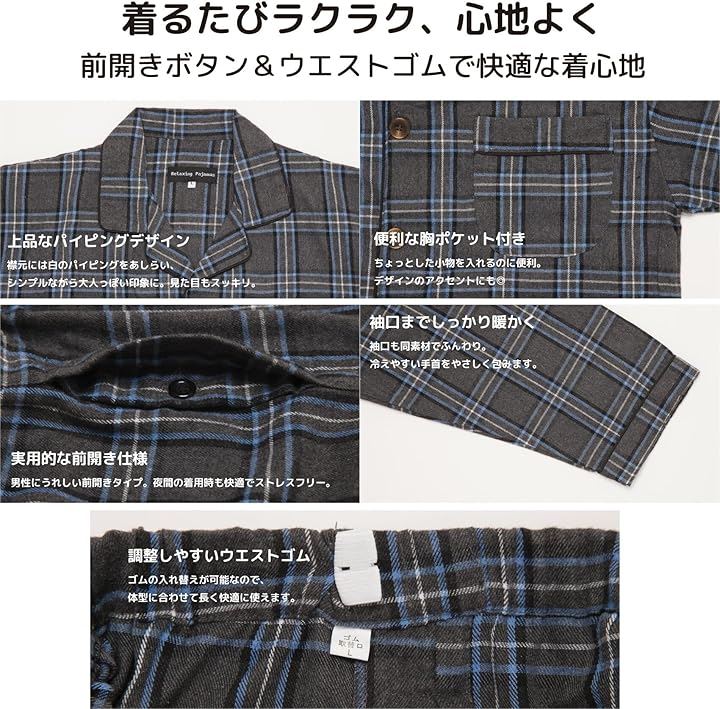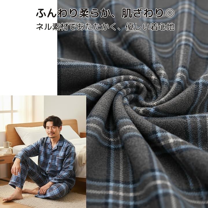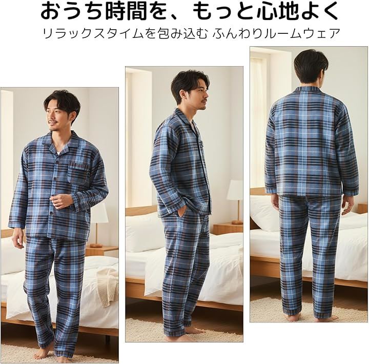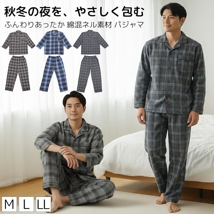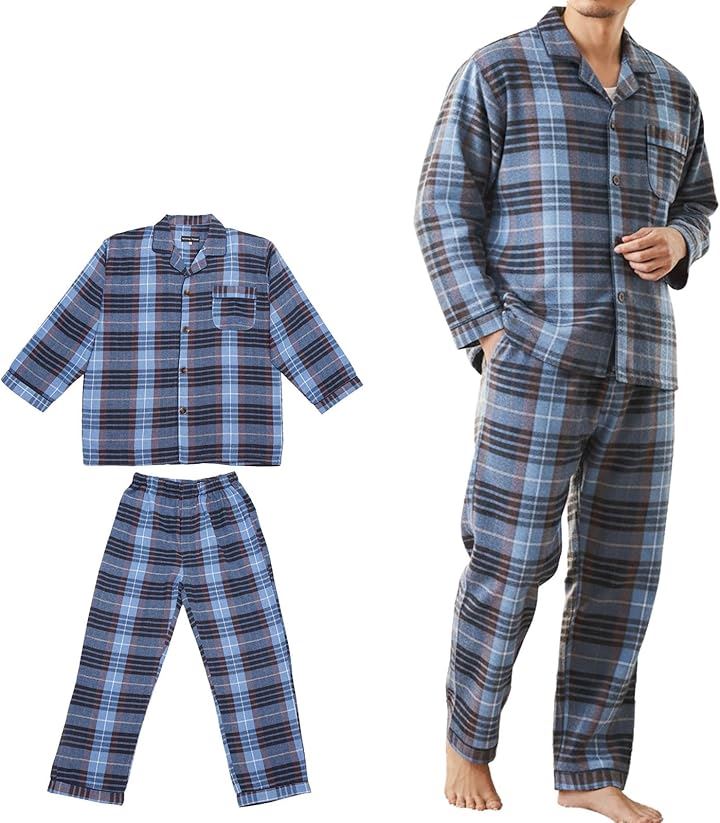 パジャマ メンズ 長袖 秋 冬 綿混 ネル素材 肌に優しい 前開き 上下セット 長ズボン ルームウェア 部屋着