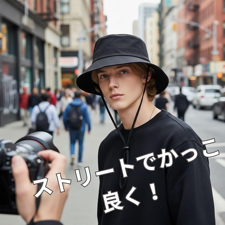 v「抜群のシルエット」ストリートでもかっこよく、機能性にも優れたバケットハットです。