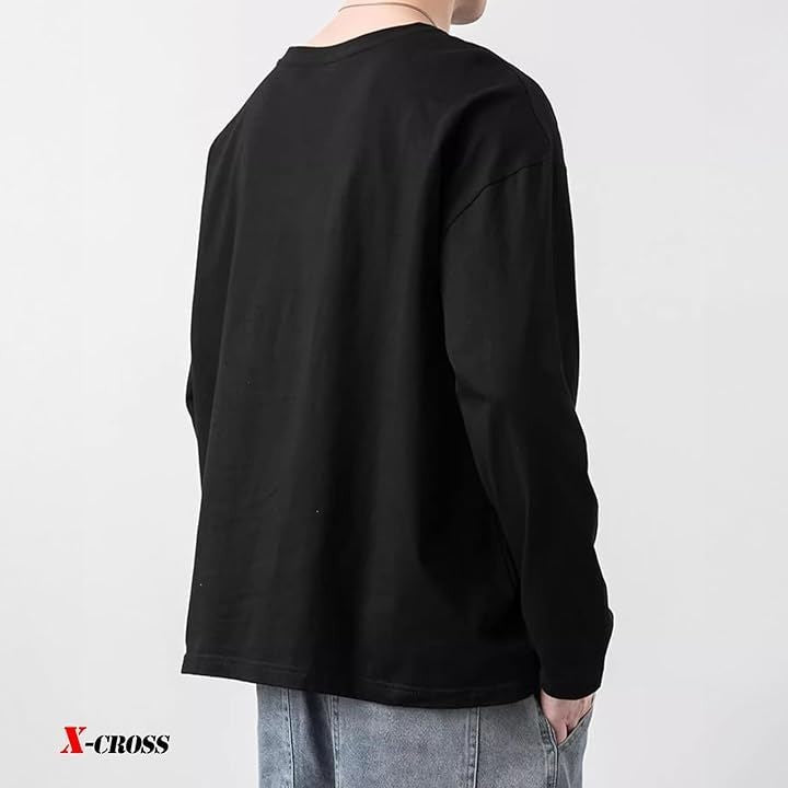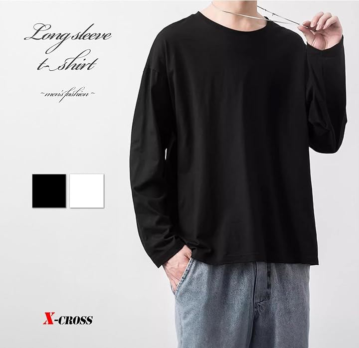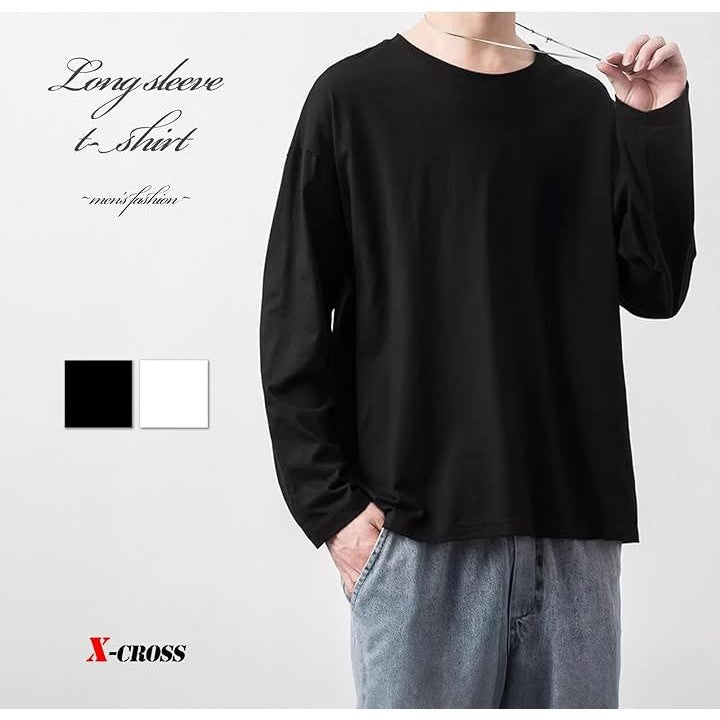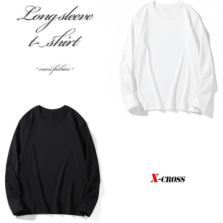クロス ロンt 無地 黒 メンズ tシャツ 薄手 コットン 長袖 ストリート クルーネック カジュアル シンプル アウトドア おしゃれ ロングスリーブ 綿 丸首 大人 伸縮性 通気性