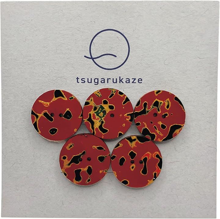 津軽塗り ボタン 5個セット 4つ穴 直径1.8cm