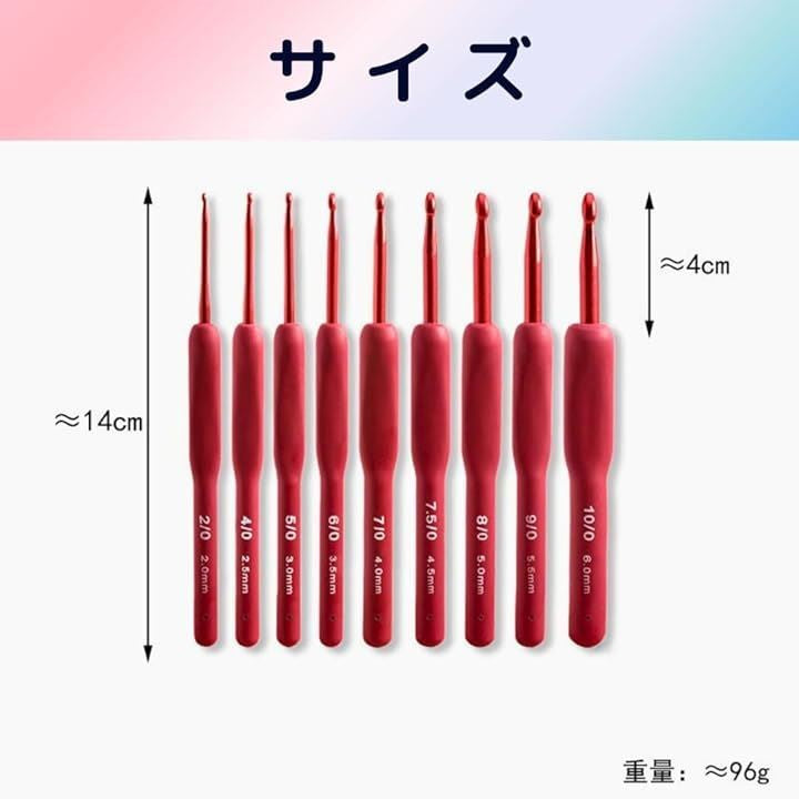 かぎ針 編み針 セット 9本 アルミ製 滑り止め 持ちやすい 軽量 手芸 裁縫道具 ハンドメイド 編み物 DIY 毛糸用 手編み クラフトツール
