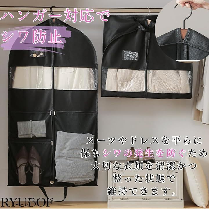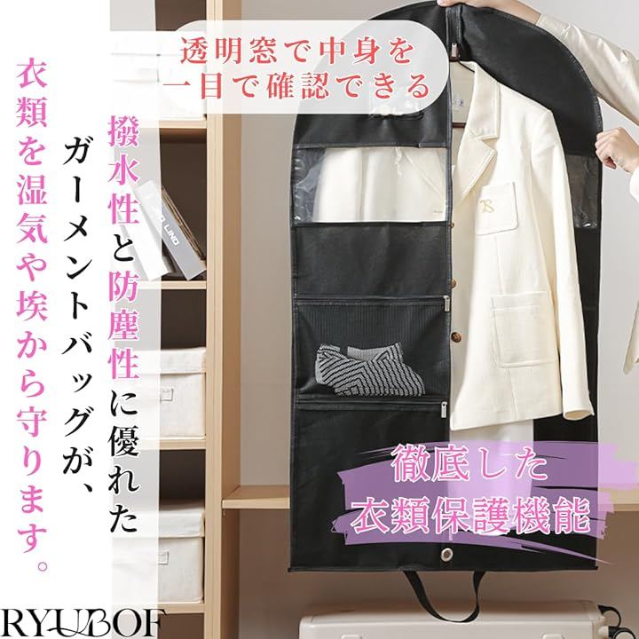 スーツ 持ち運び スーツカバー ガーメントバッグ ガーメントケース 衣類カバー 洋服カバー スーツバッグ メンズ レディース 出張 旅行 型崩れ防止 軽量 ハンガー対応