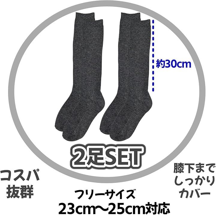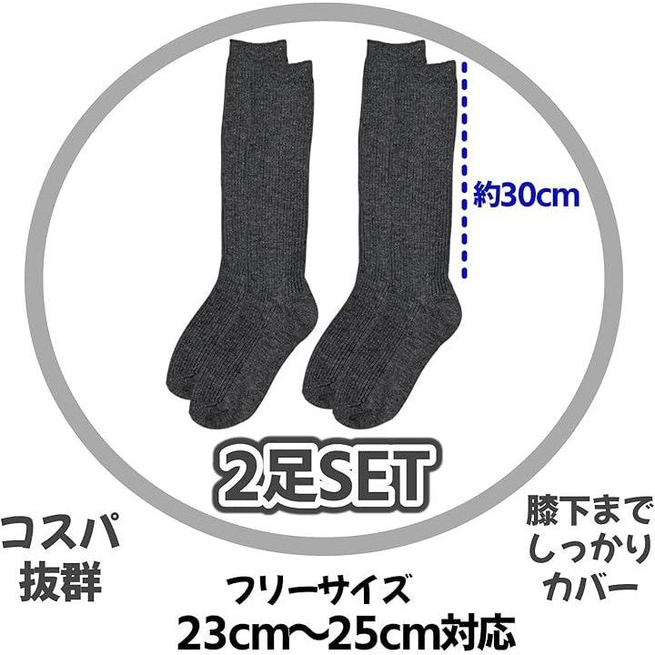 ハイソックス レディース 靴下 無地 2足セット 膝下丈