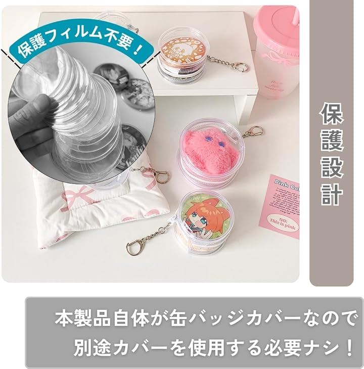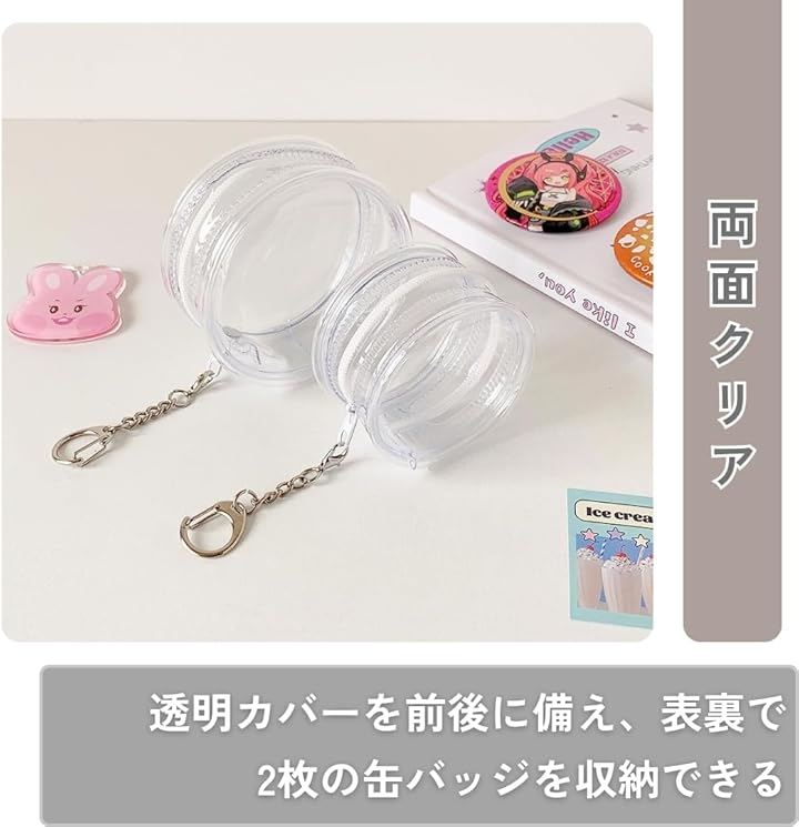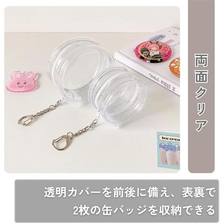 缶バッジ キーホルダー 収納 ケース カバー 痛バッグ 缶バッチ 両面収納 透明 3個セット