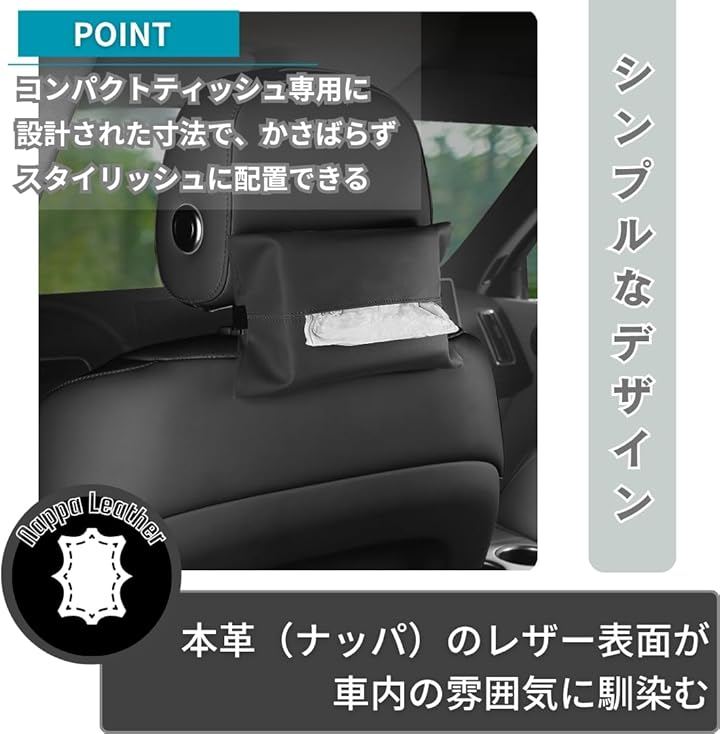 車 ティッシュケース 吊り下げ 収納 ヘッドレスト コンパクトティッシュ専用