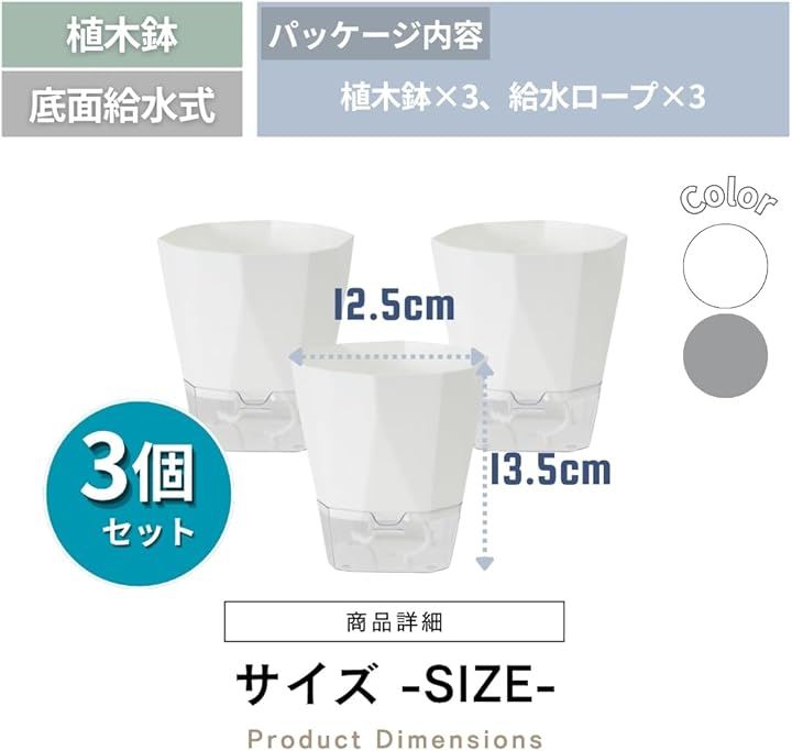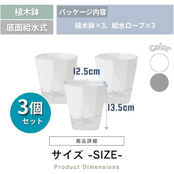 植木鉢 ハイドロカルチャー 底面給水鉢 自動給水 プランター 観葉植物 12.5x13.5cm 3個セット