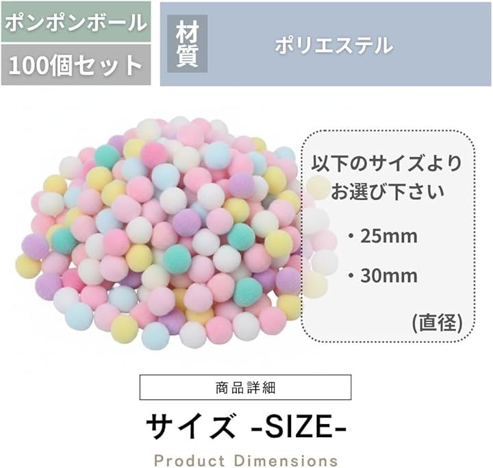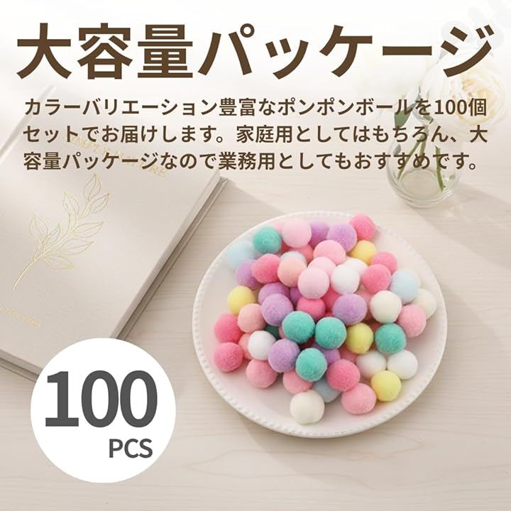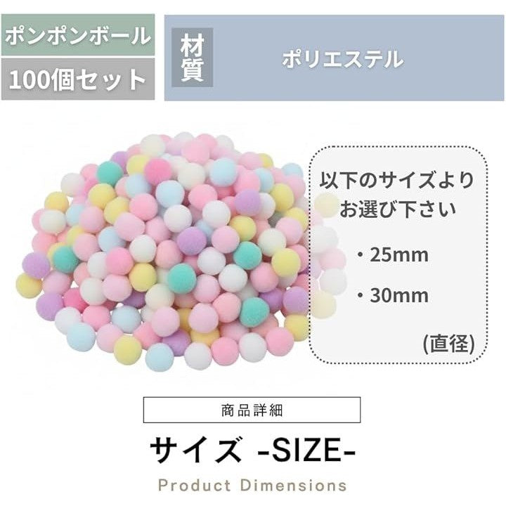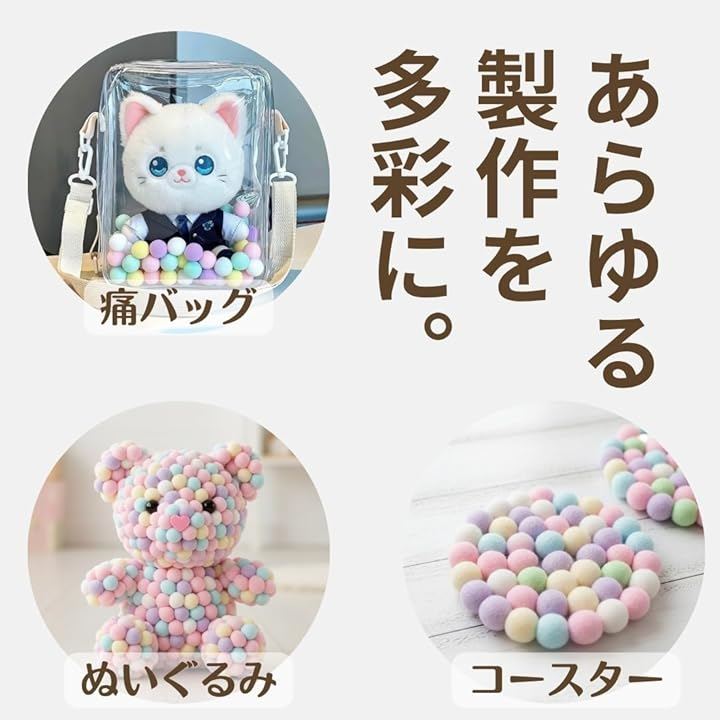 ポンポンボール カラフル 100個入り 推し活 装飾 デコパーツ 手芸綿 痛バッグ 飾り
