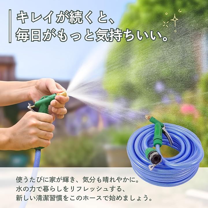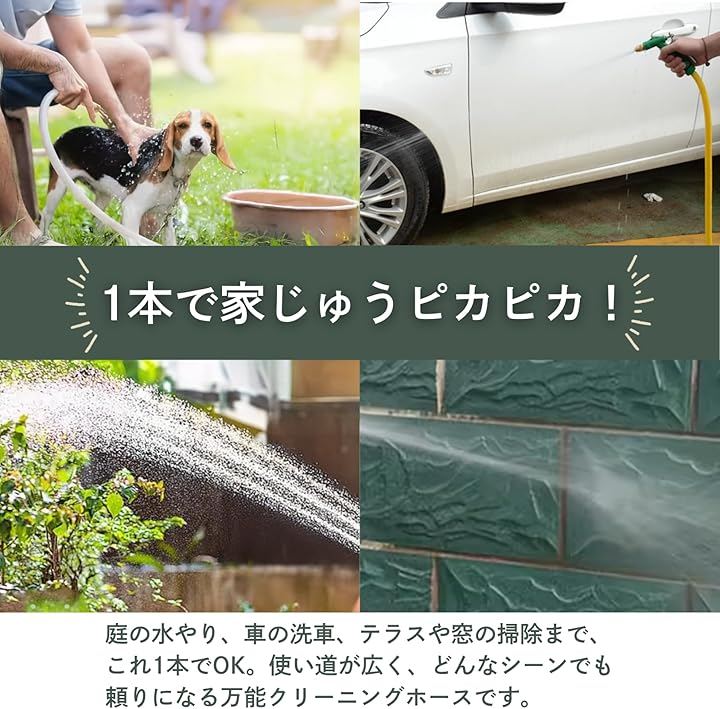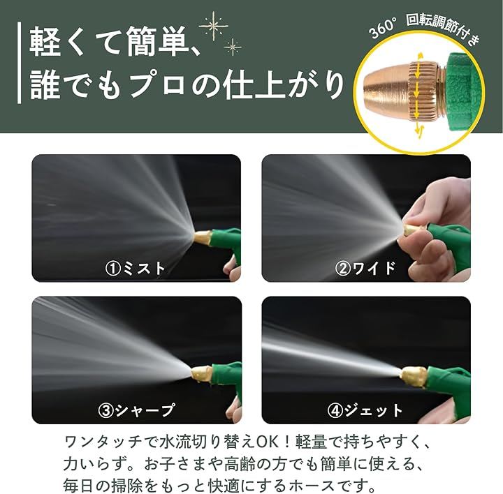 強力噴射でスッキリ爽快多機能ホース ウォーターガン 洗車 ミスト散水 庭 屋外 スプレーノズル
