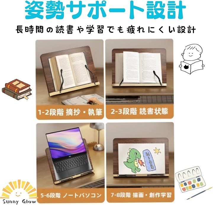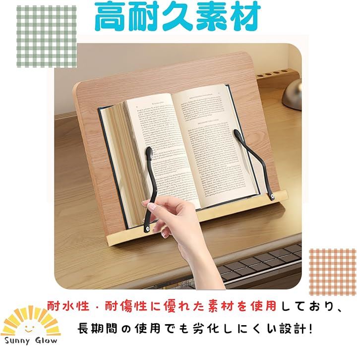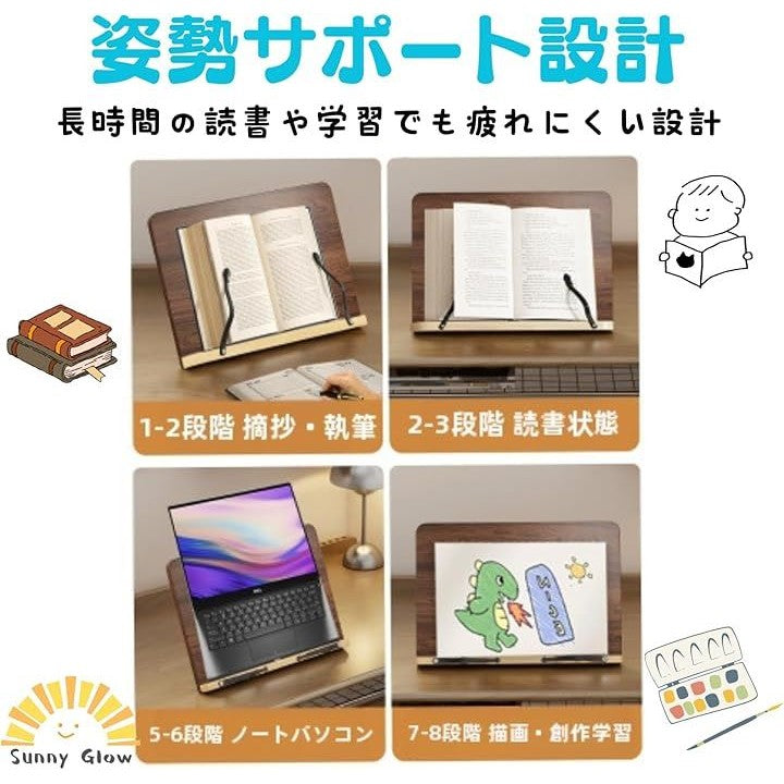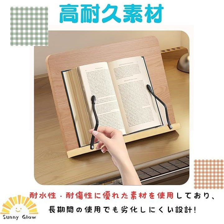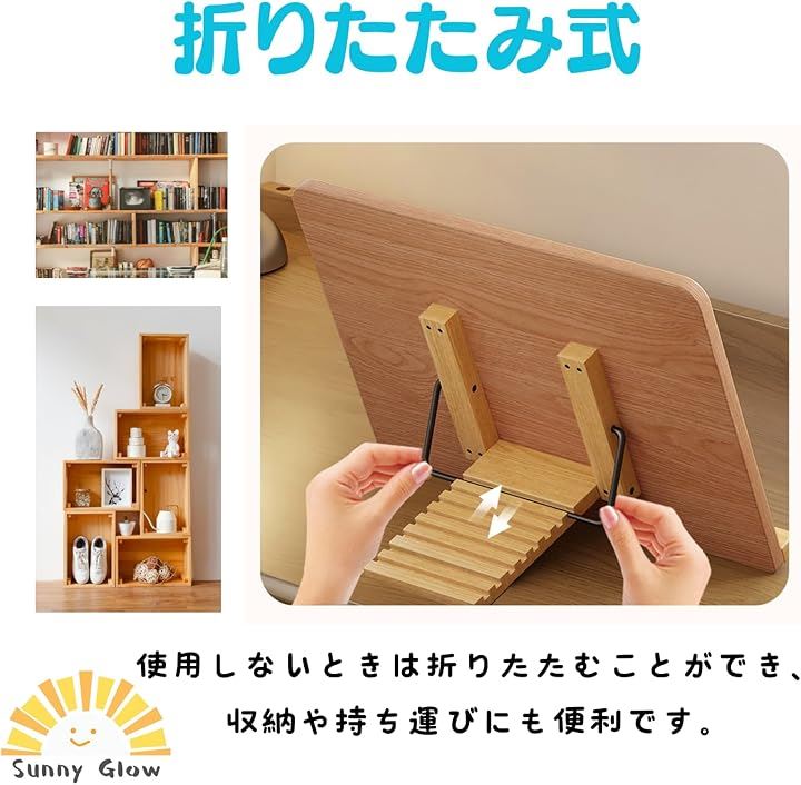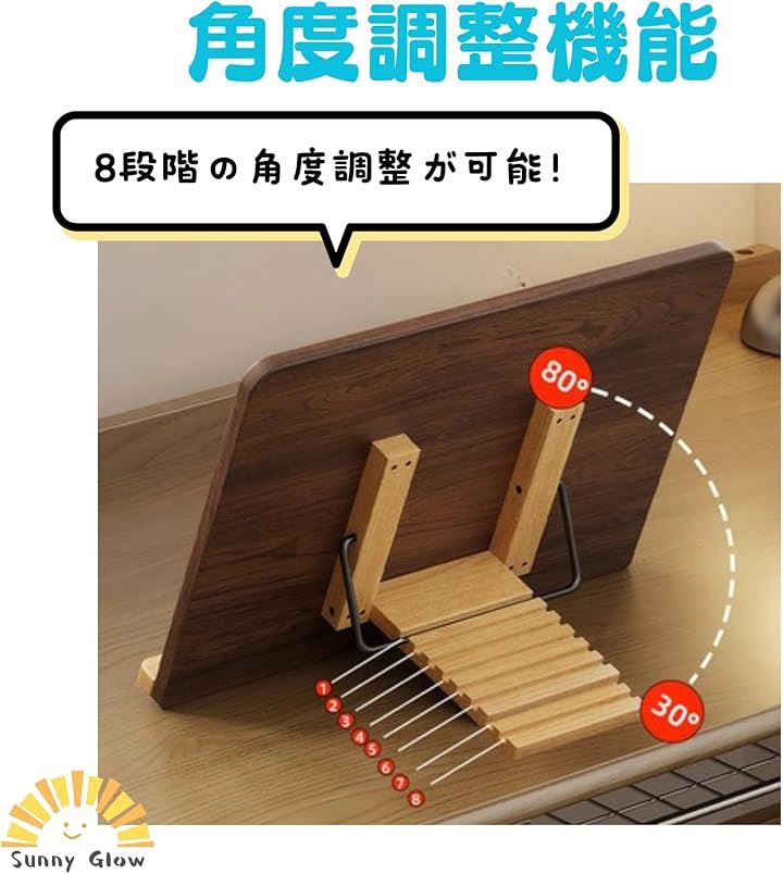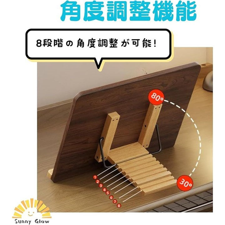 ブックスタンド 書見台 読書台 卓上 折りたたみ式 調整可能 角度8段階 姿勢サポート 天然木風 ナチュラルウッド調