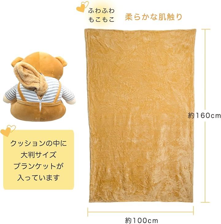 ブランケット ぬいぐるみ クマ 大判 ひざ掛け やわらか 2WAY