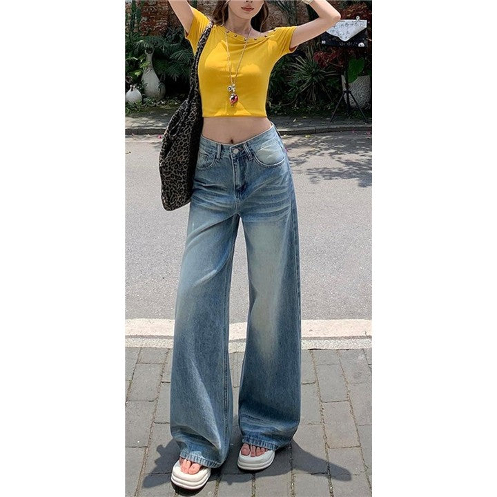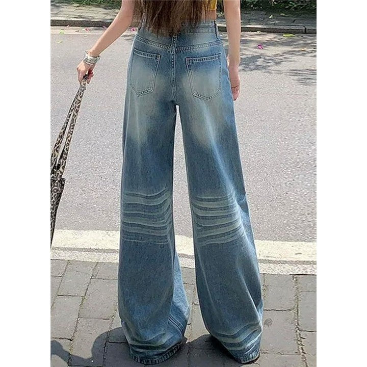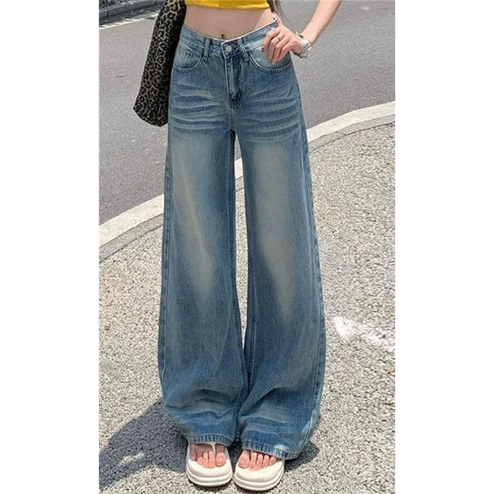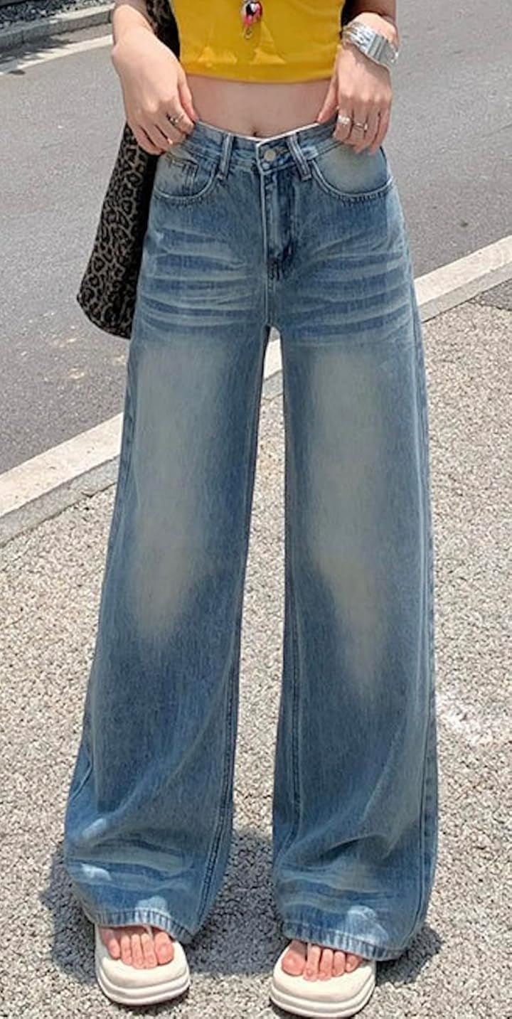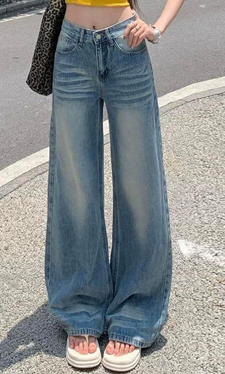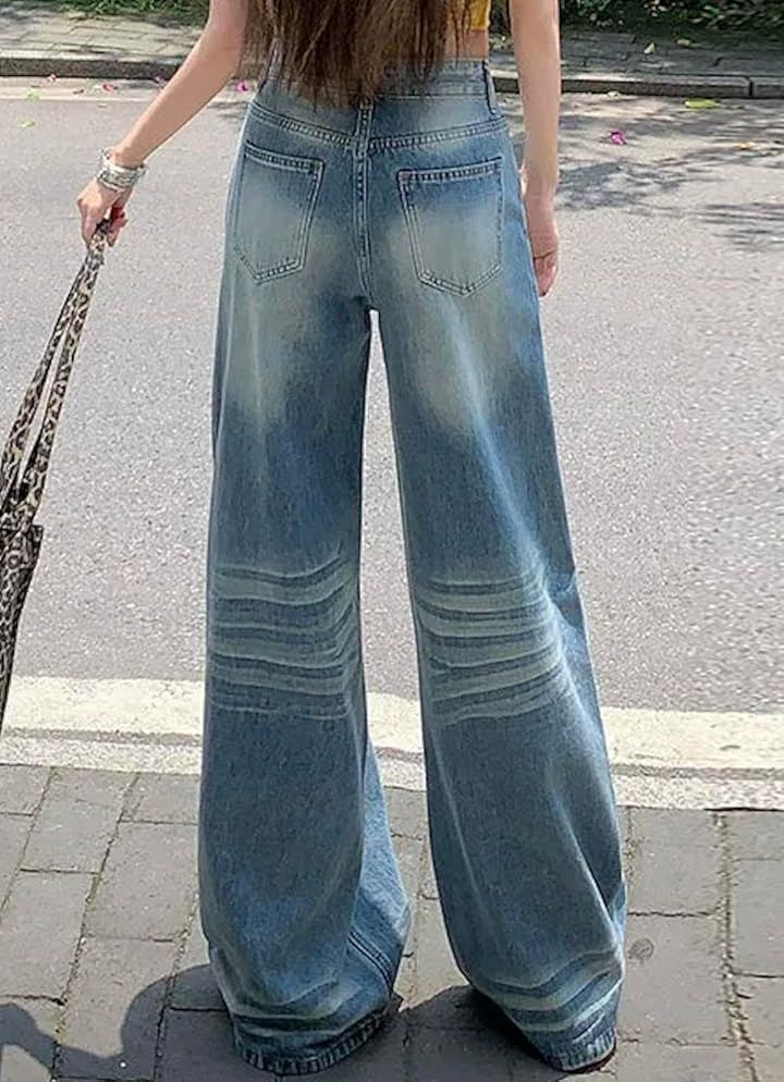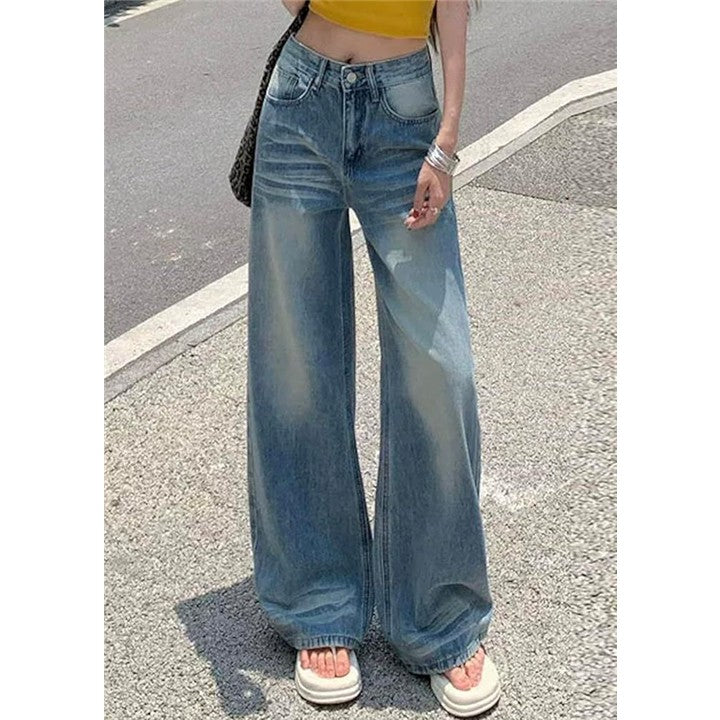 デニム ルーズ ワイド ボトムス ズボン レディース シンプル カジュアル 韓国風 韓流