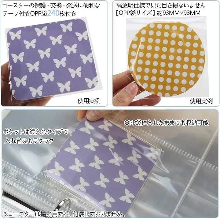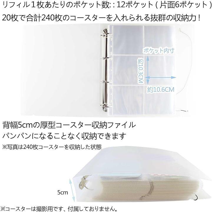 コースター収納ホルダー コースター収納ファイル 推し活ファイル A4 最大収容枚数 240枚 テープ付きOPP袋240枚付き 片面6ポケット 両面リフィル