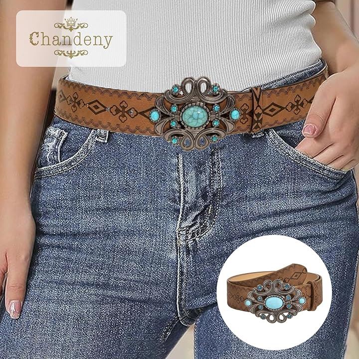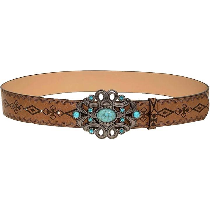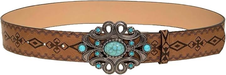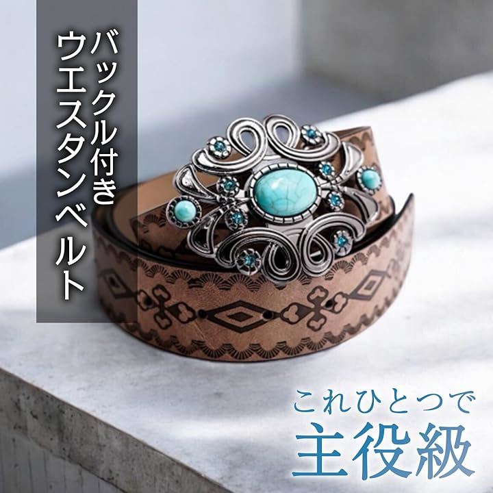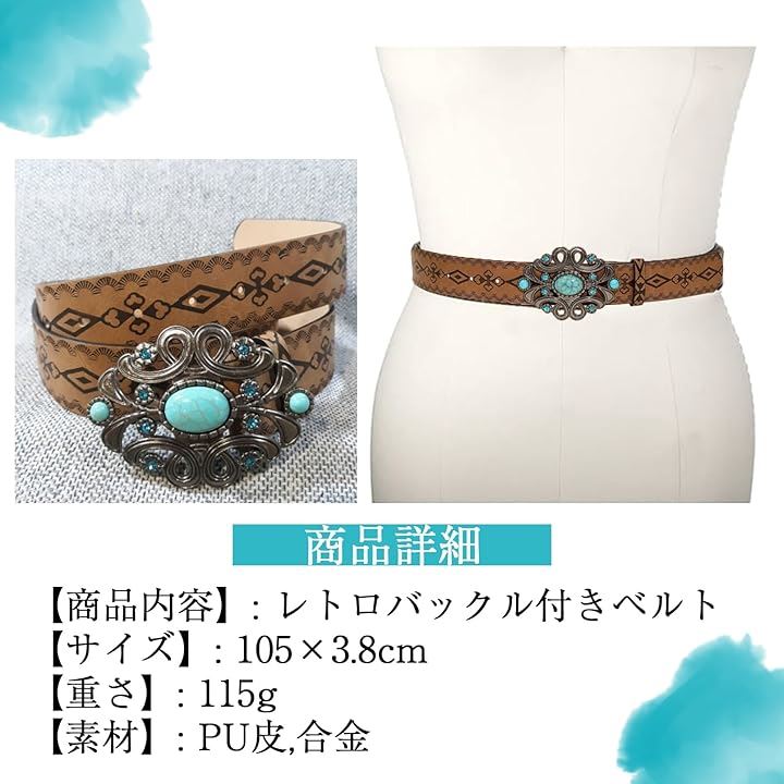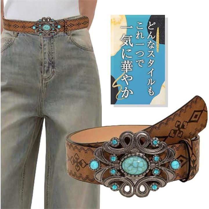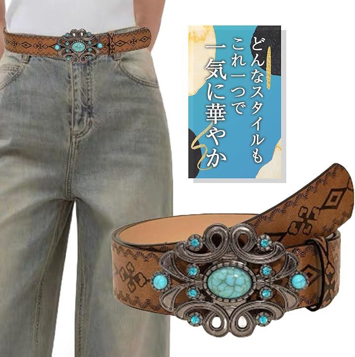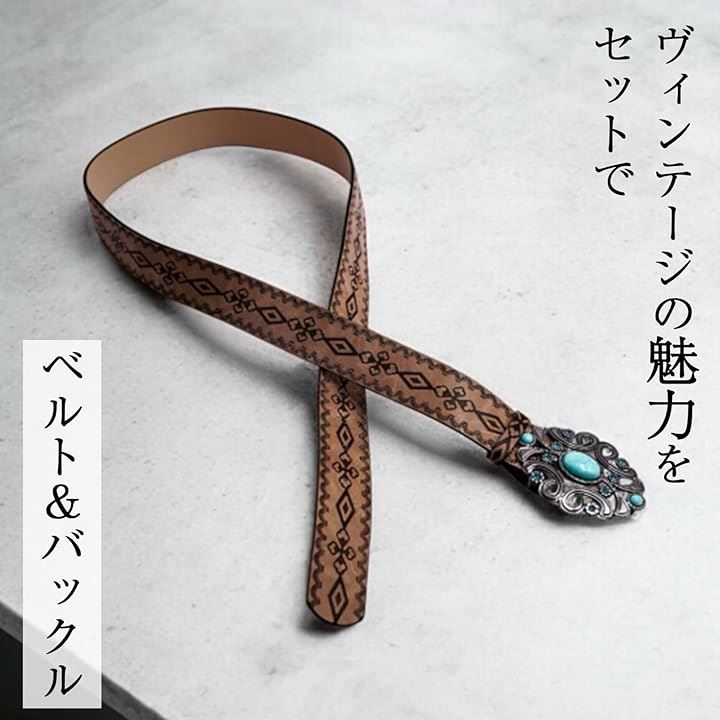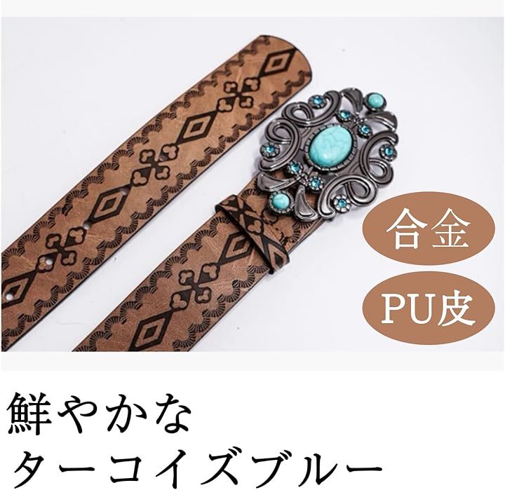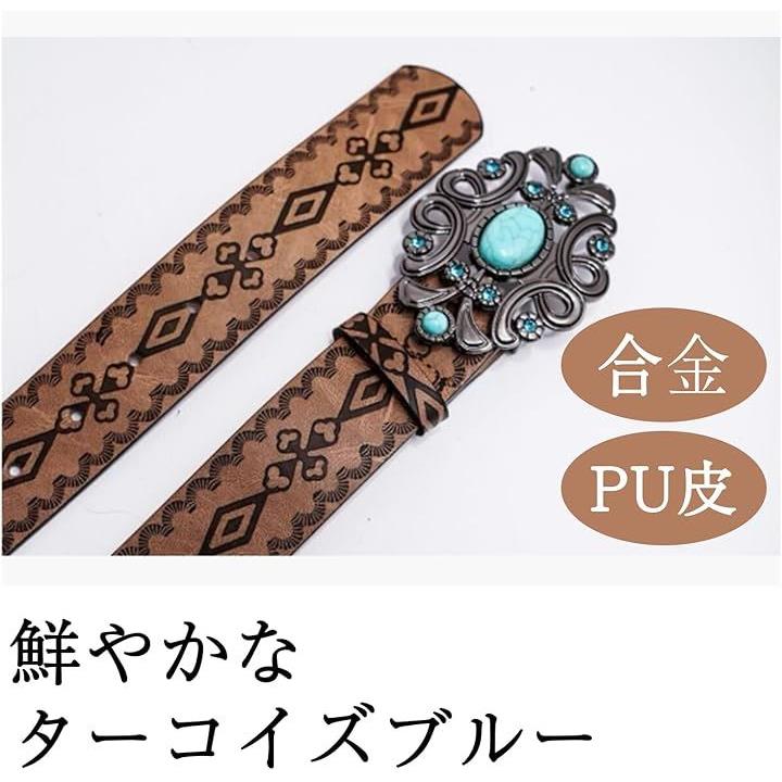 レトロ バックル付き ベルト 華やか アラベスク ターコイズブルー イミテーションストーン セット