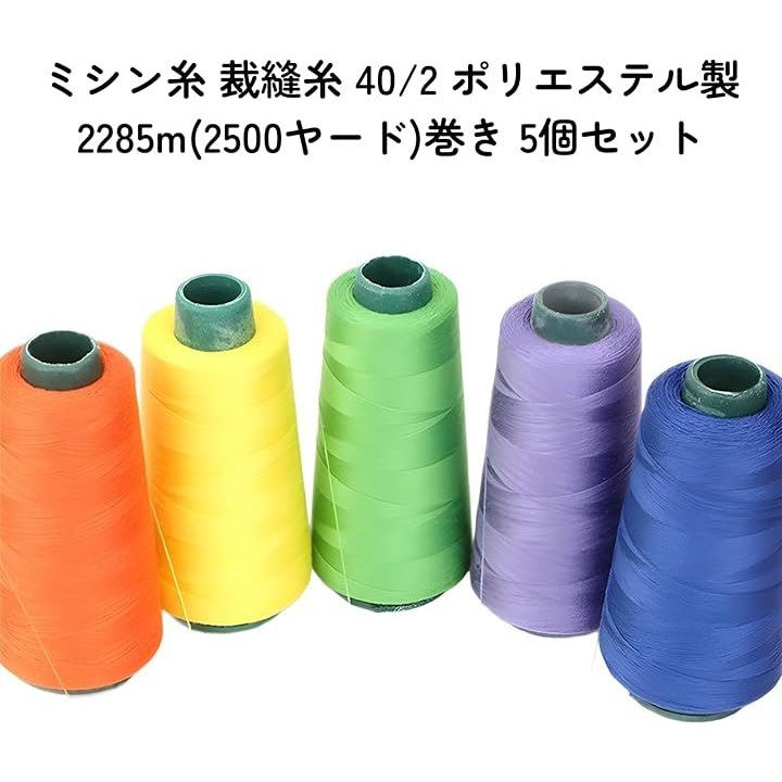ミシン糸 裁縫糸 40/2 ポリエステル製 2285m 2500ヤード巻き 5個セット