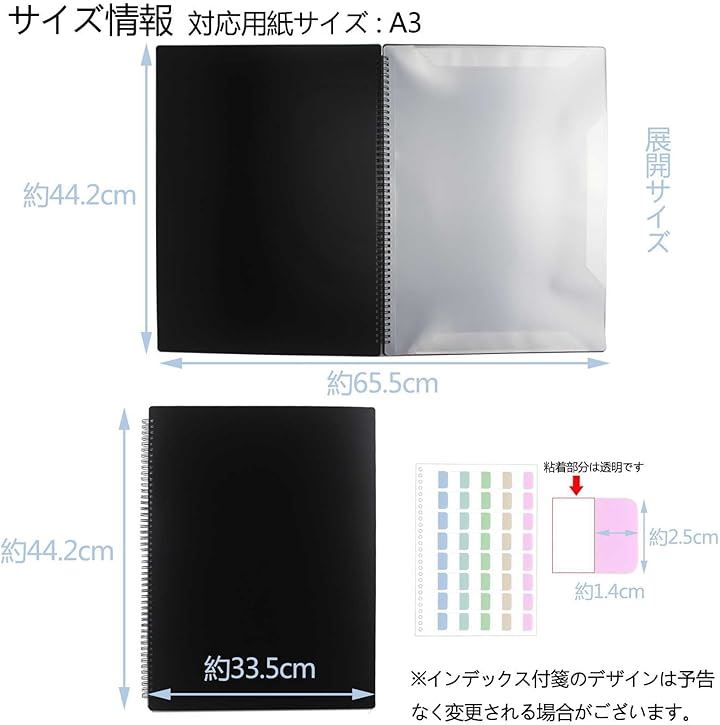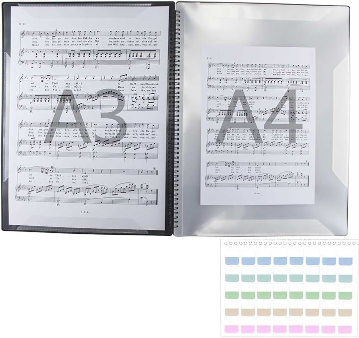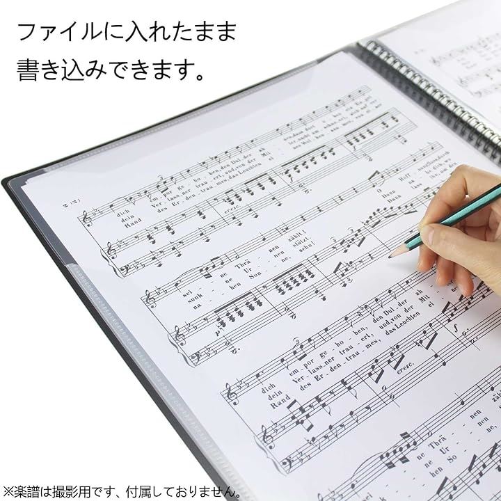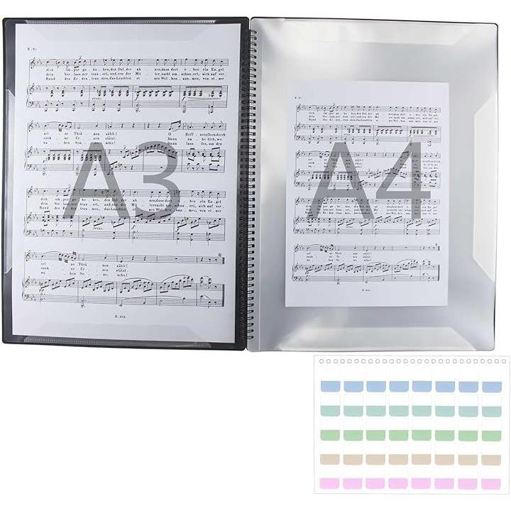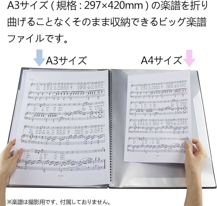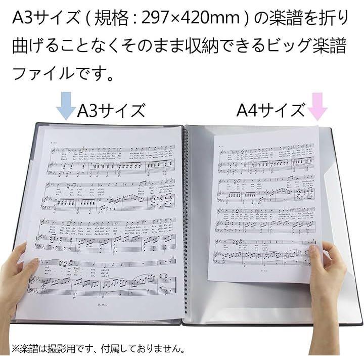 楽譜ファイル A3縦型 バンドファイル 書き込める ビッグサイズ 楽譜入れ 30ページ A3の楽譜を折り曲げずにそのまま収納 黒 無地