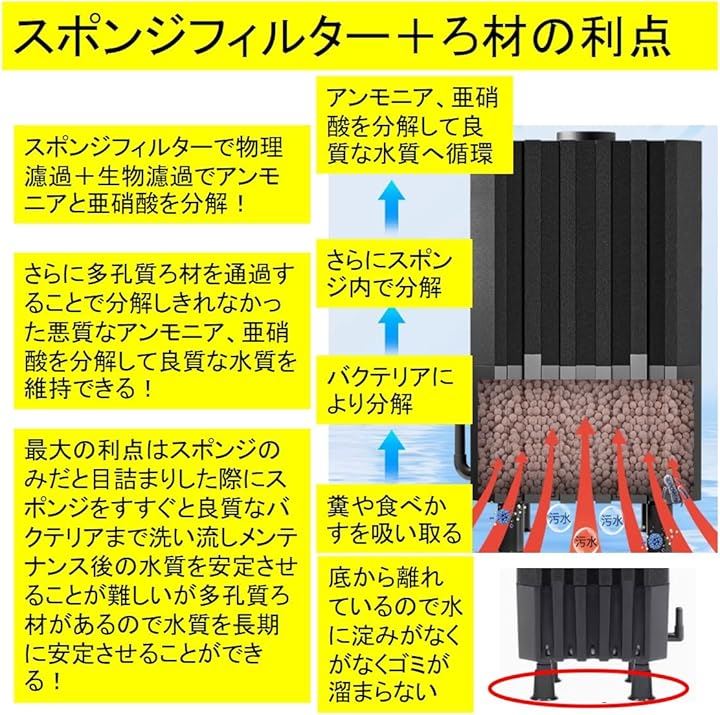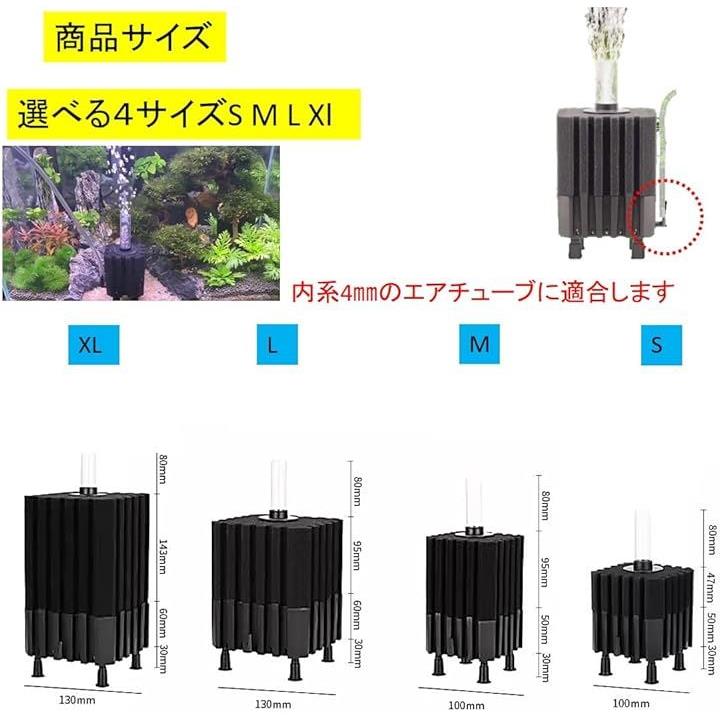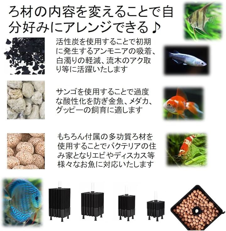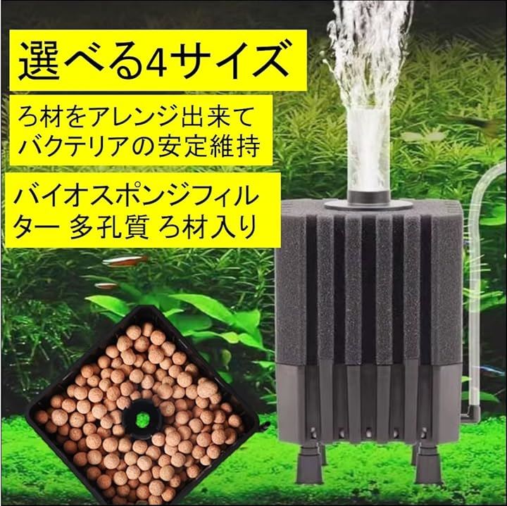 バイオスポンジフィルター 多孔質 ろ材入り 簡単設置 アクアリウム 水槽 ろ過 バクテリア 熱帯魚 金魚 メダカ エビ アロワナ