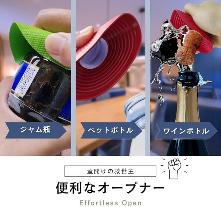 キャップオープナー 瓶 缶 ペットボトル 蓋開け 補助道具 ジャム ワイン シリコン製 3枚セット