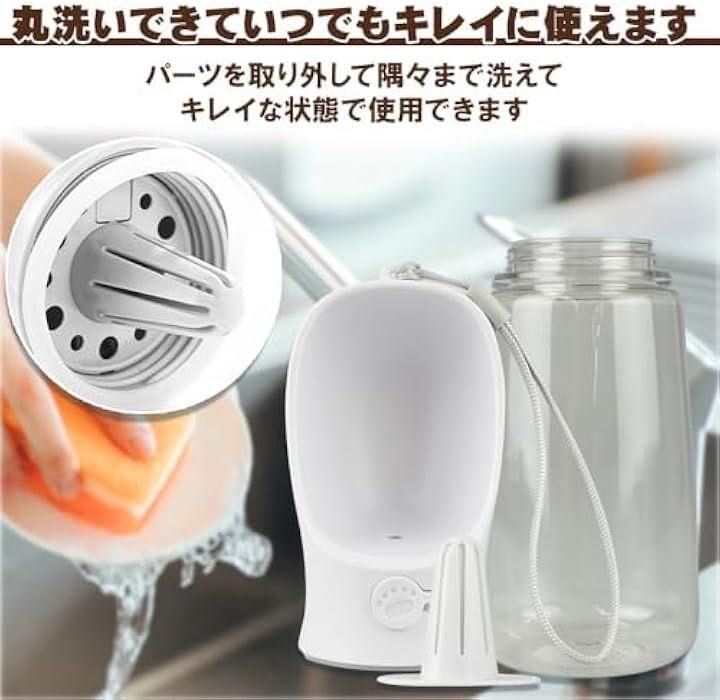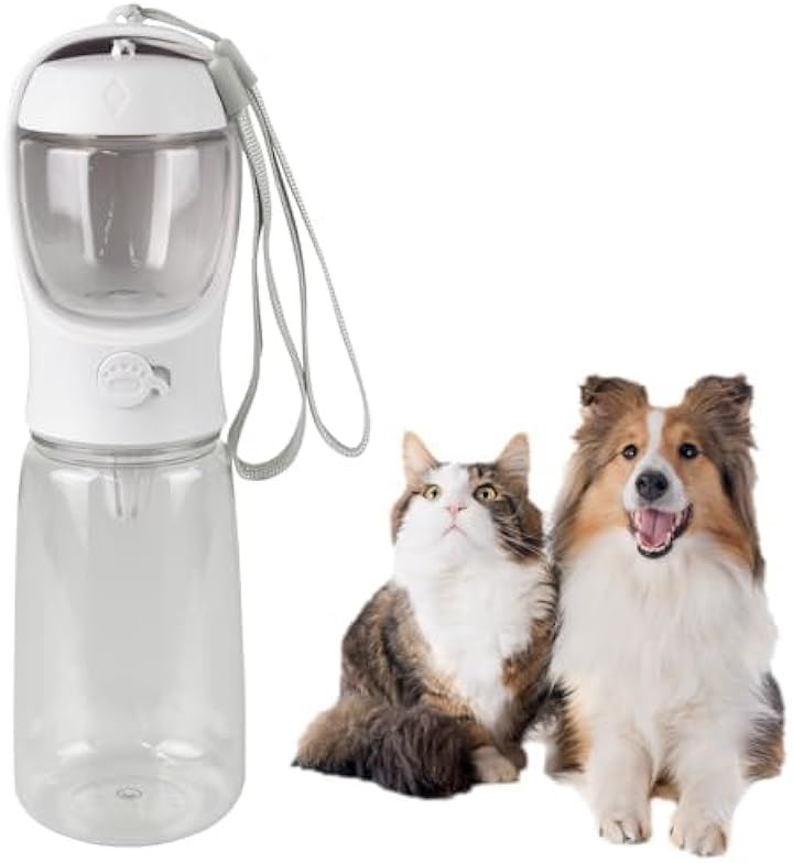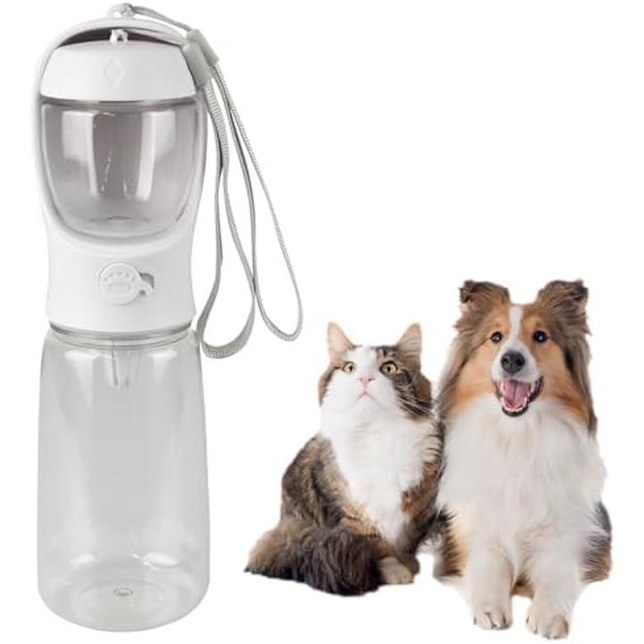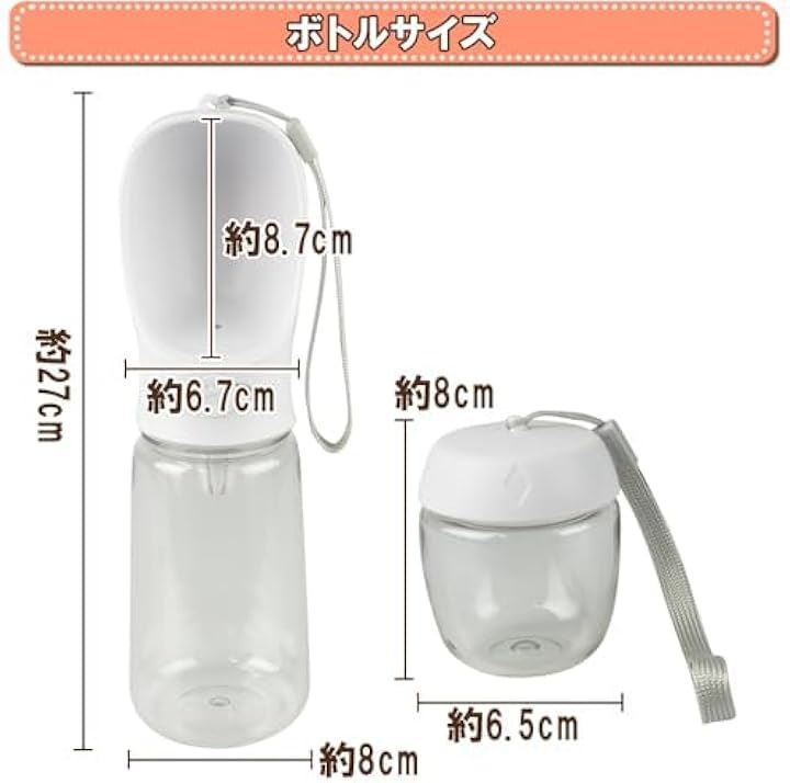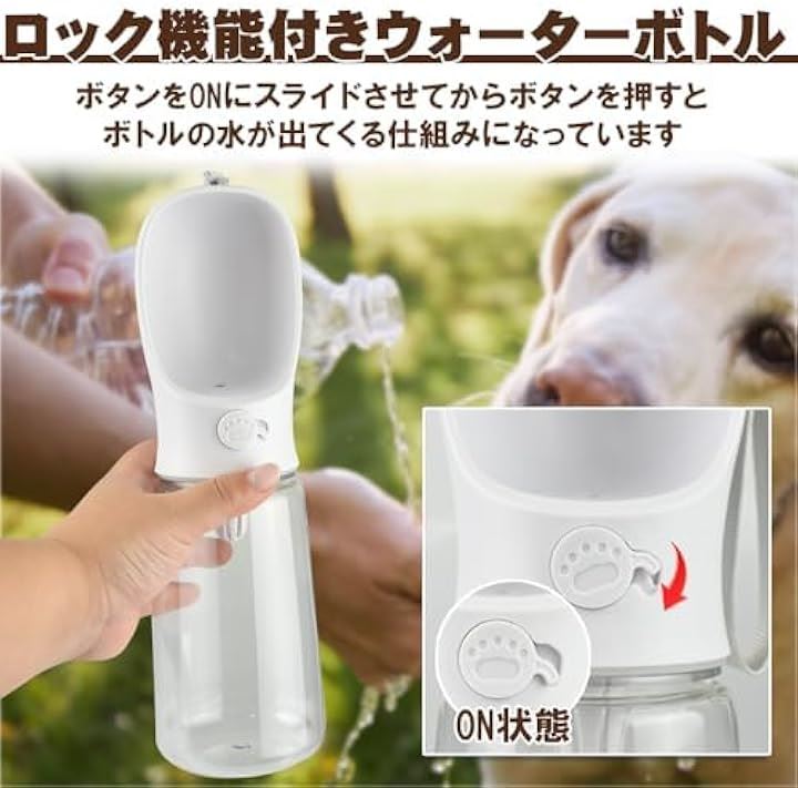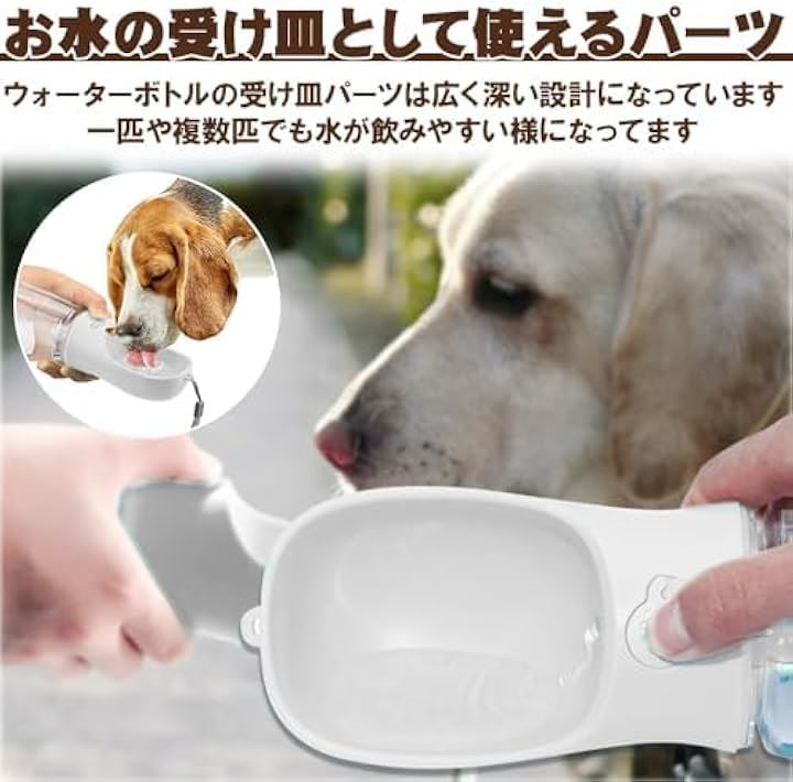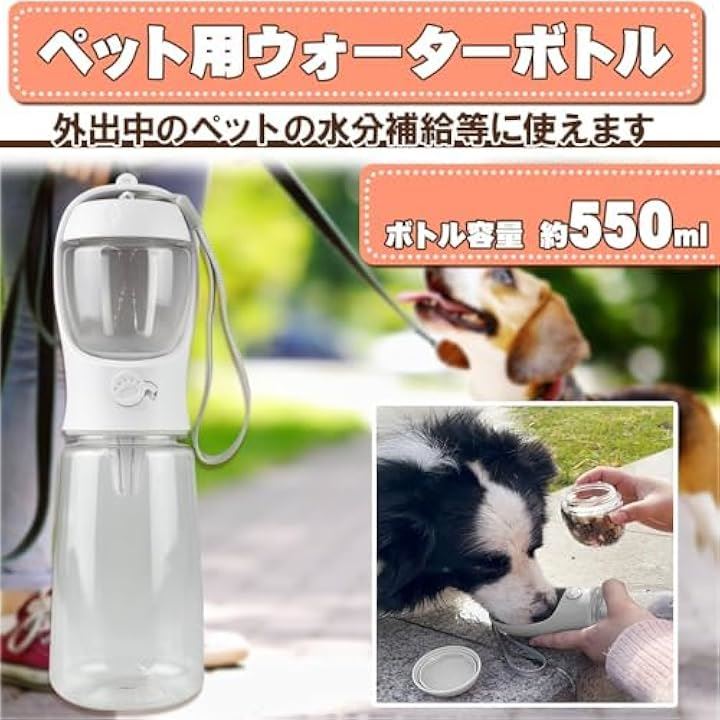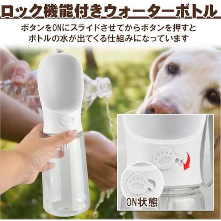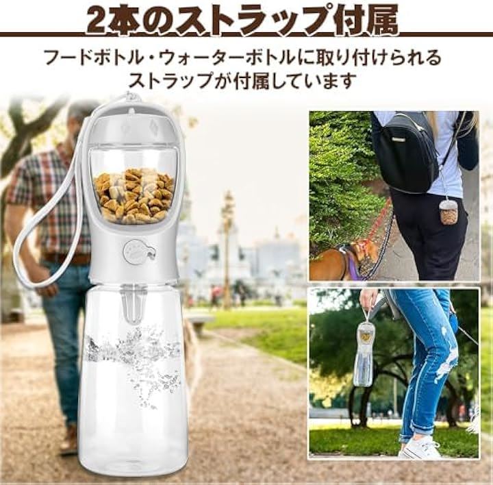 携帯用ペットウォーターボトル 犬猫用給水器 水漏れ防止 フードボトル付き 2in1ペットウォーターボトル