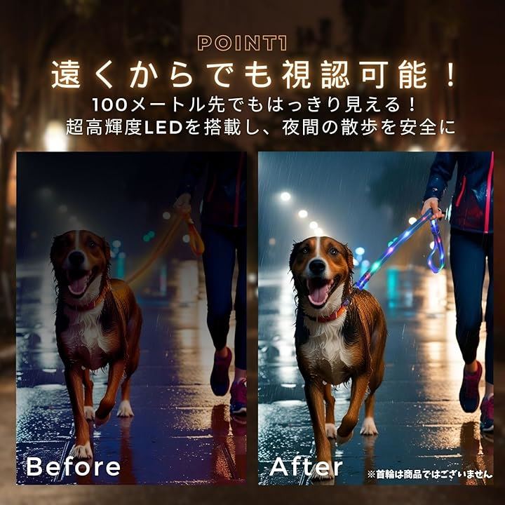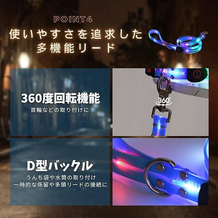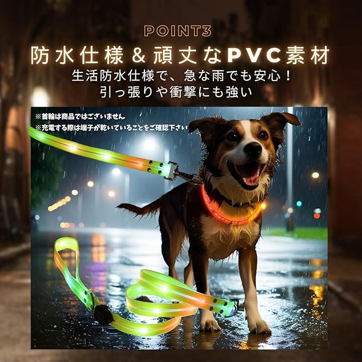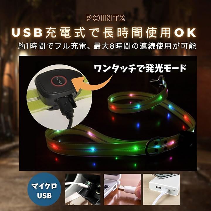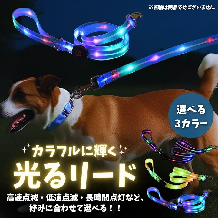 光るリード 犬 LED USB充電 夜間 発光 散歩 ライト 犬用 小型犬 中型犬 大型犬 ペット用品