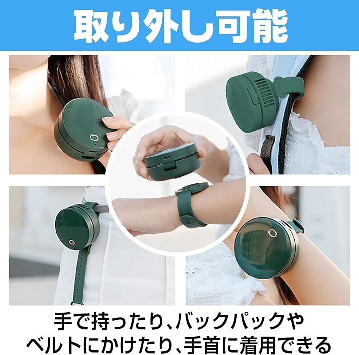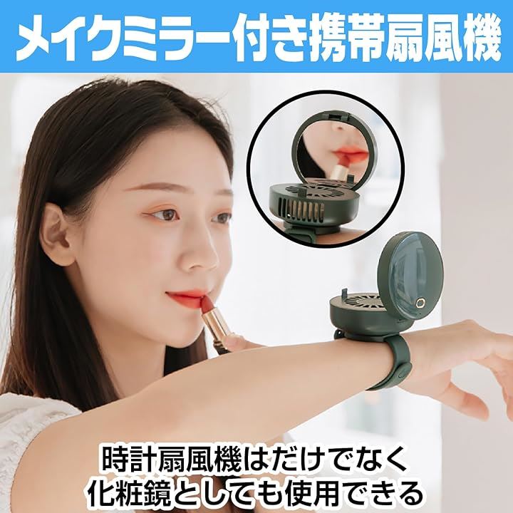 携帯扇風機 メイクミラー付き 手首 リスト ポータブル 化粧鏡 コンパクト USB充電式 熱中症対策 アウトドア 通勤通学