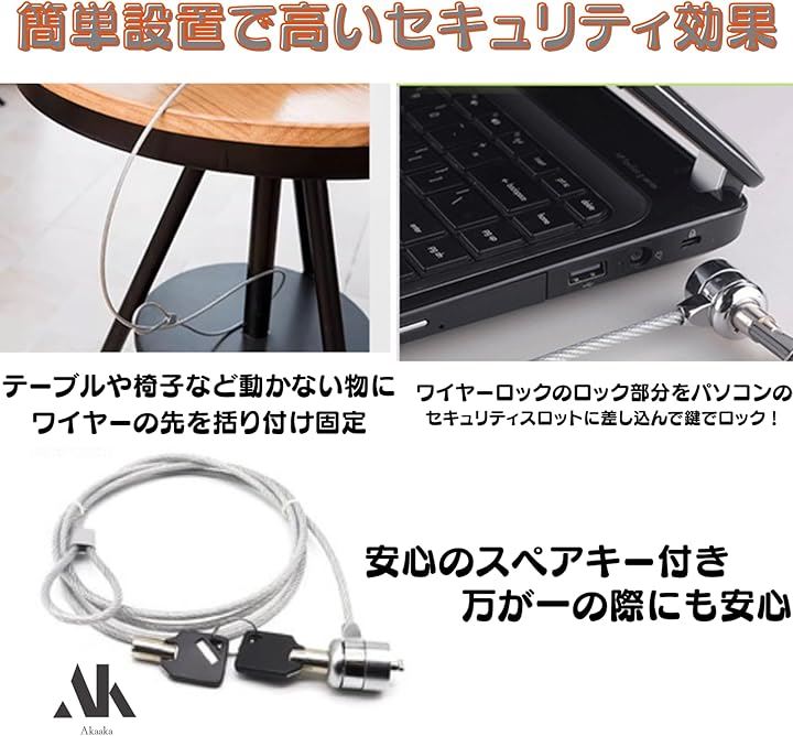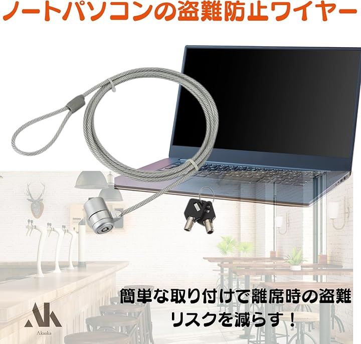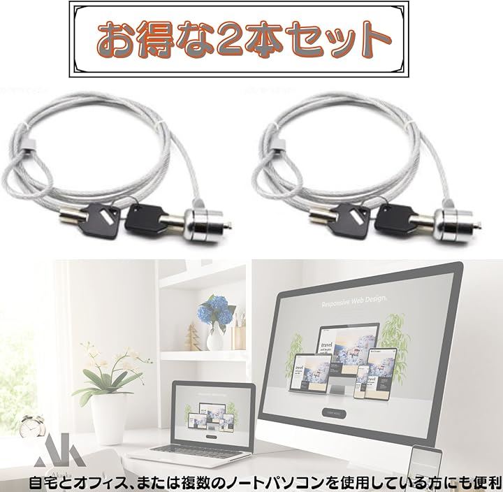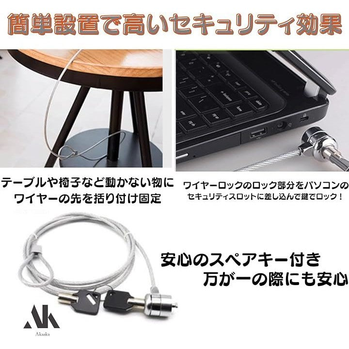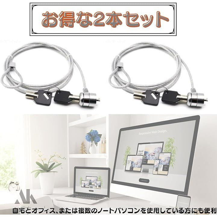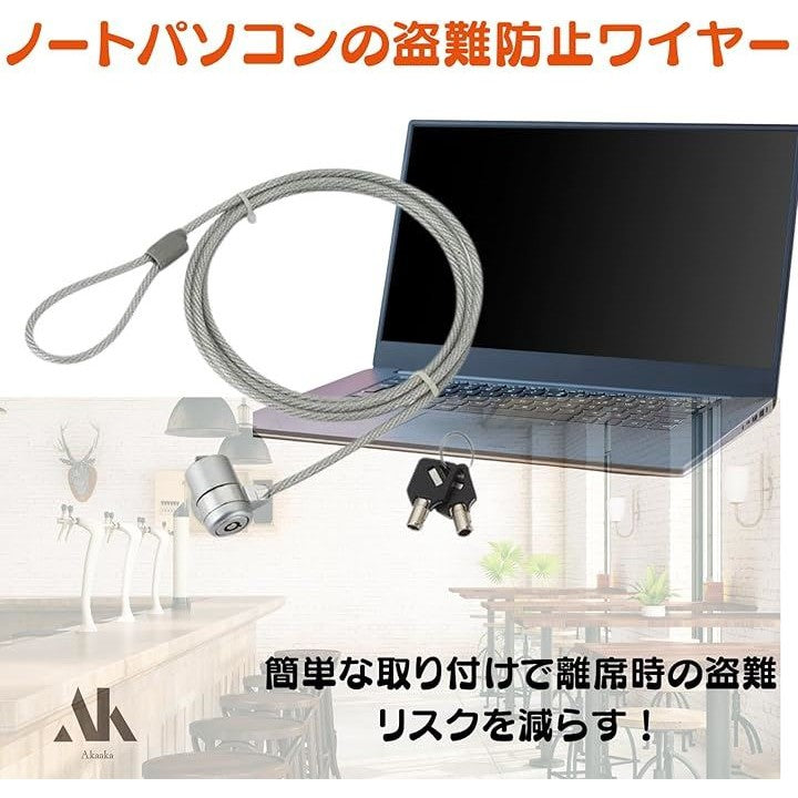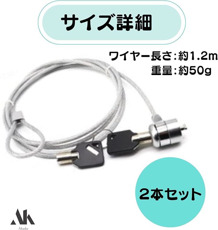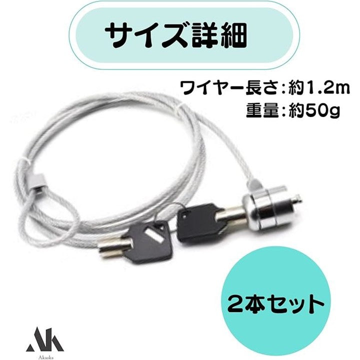 パソコン ワイヤー ロック ノートpc モニター セキュリティワイヤー 盗難防止 pc周辺機器 防犯 セキュリティスロット 1.2m 2個セット