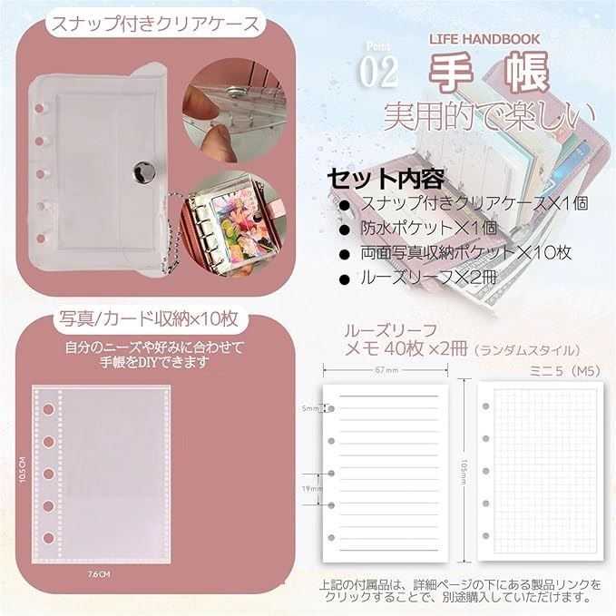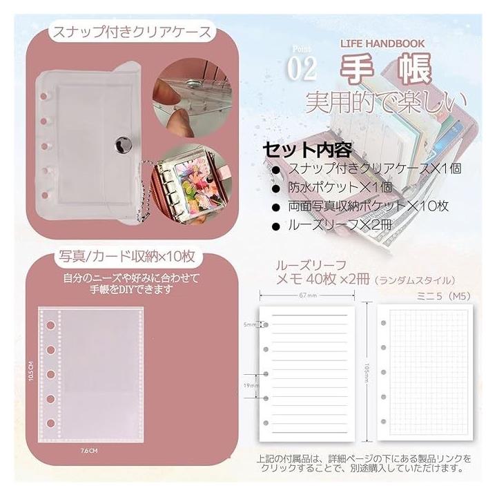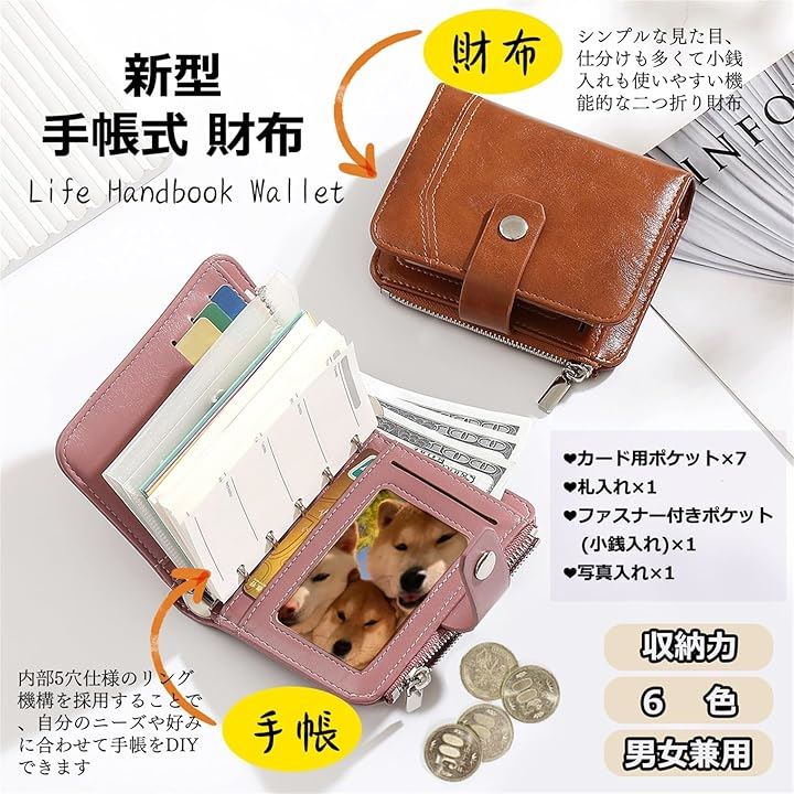新型 手帳式 財布 レディース 二つ折り メンズ ビジネス手帳 推し活 写真 カード収納 小銭入れなし 可愛い おしゃれ M5内ページ PUレザー バインダー 多機能財布