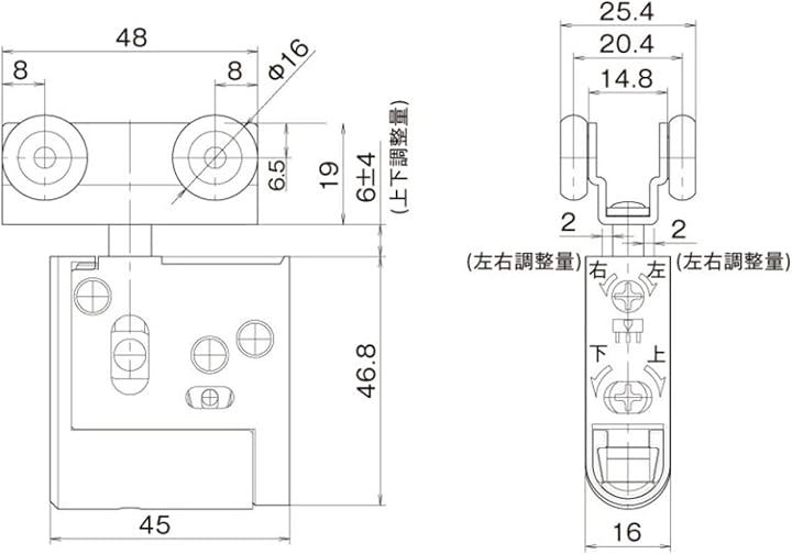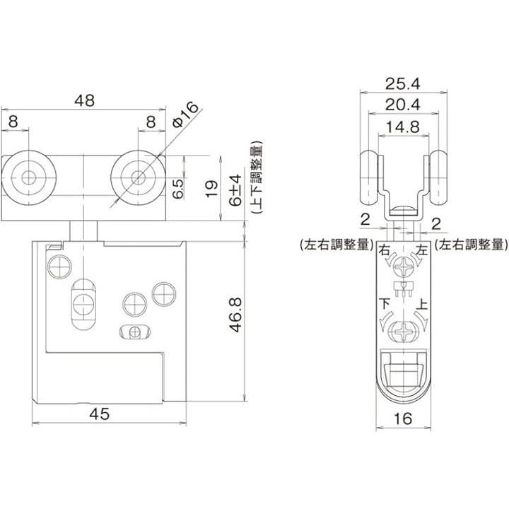 nakao 中尾製作所 上吊戸車II NH-074 ベアリングローラー付き ブラウン 引戸用戸車 修理 交換用 上部戸車 高耐久 扉耐荷重:30kg以下 上下左右調整可能 専用レール NH-001 / NHL-0009